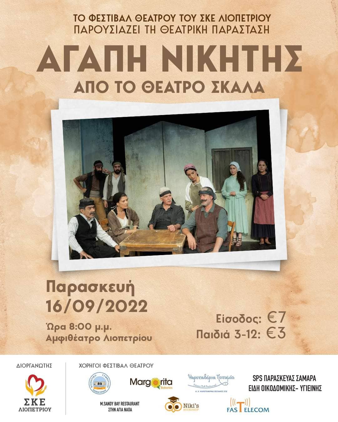Το φεστιβάλ θεάτρου του ΣΚΕ Λιοπετριού παρουσιάζει την θεατρική παράσταση με τίτλο «Αγάπη Νικητής».