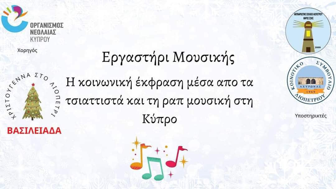 Τα εργαστήρια οργανώνονται με τη στήριξη του Αντιναρκωτικού Σχολείου Λιοπετριού – Φάρος Ζωής και του Κοινοτικού Συμβουλίου Λιοπετριού.