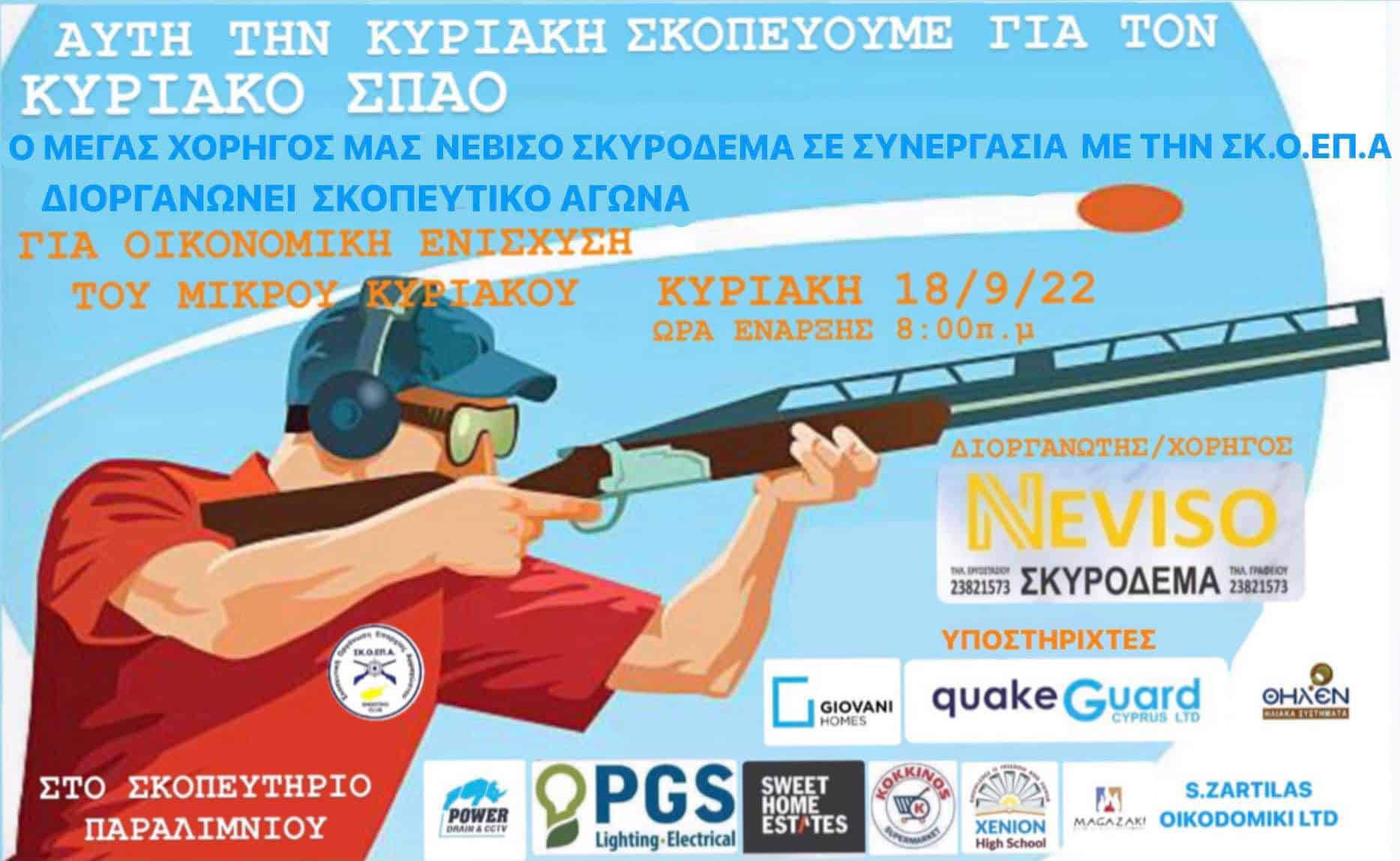 Σκοπευτικός Αγώνας με τίτλο «Σκοπεύουμε για τον Κυριάκο Σπάο» διοργανώνεται την Κυριακή 18/09/2022 η ώρα 8:00π.μ, στο σκοπευτήριο Παραλιμνίου.