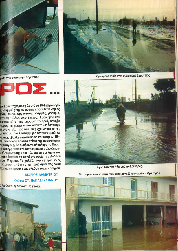 Η πρωτόγνωρη θεομηνία που βίωσε η Επαρχία Αμμοχώστου και έπληξε κυρίως τα χωριά Παραλίμνι, Φρέναρος και Δερύνεια, άφησε πίσω της μεγάλες ζημιές σε σπίτια, αυτοκίνητα, δημόσια περιουσία και γεωργικές καλλιέργειες.