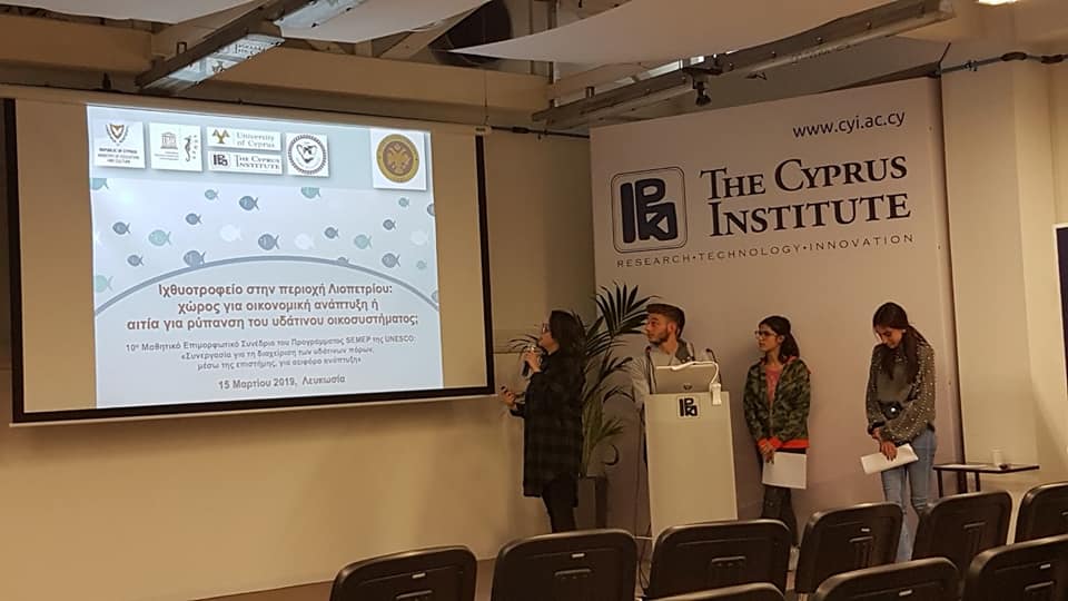 Οι μαθητές παρουσίασαν στο “SCYence Fair 2019” την έρευνά τους για το ιχθυοτροφείο Λιοπετρίου με τίτλο: “Ιχθυοτροφείο στην περιοχή Λιοπετρίου: χώρος για οικονομική ανάπτυξη ή αιτία για ρύπανση του υδάτινου οικοσυστήματος”, υπό την καθοδήγηση της καθηγήτριάς τους Θεώνης Λοΐζου.