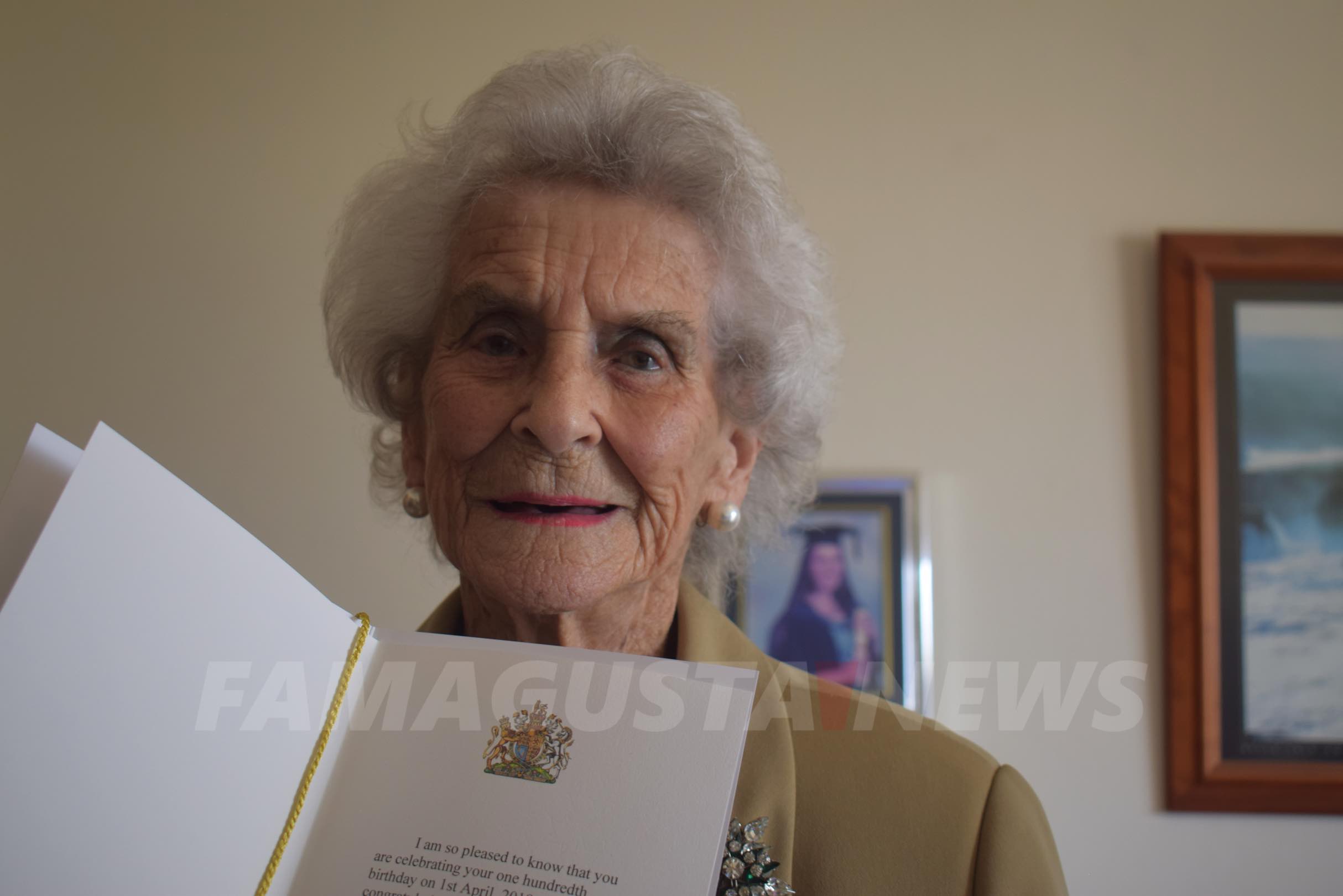 Μάλιστα, με περηφάνεια επιδείκνυε στον φακό και την κάρτα γενεθλίων που της απέστειλε η κατά πολύ… νεαρότερή της Βασίλισσα Ελισάβετ, η οποία της ευχήθηκε για τα 100 χρόνια της!