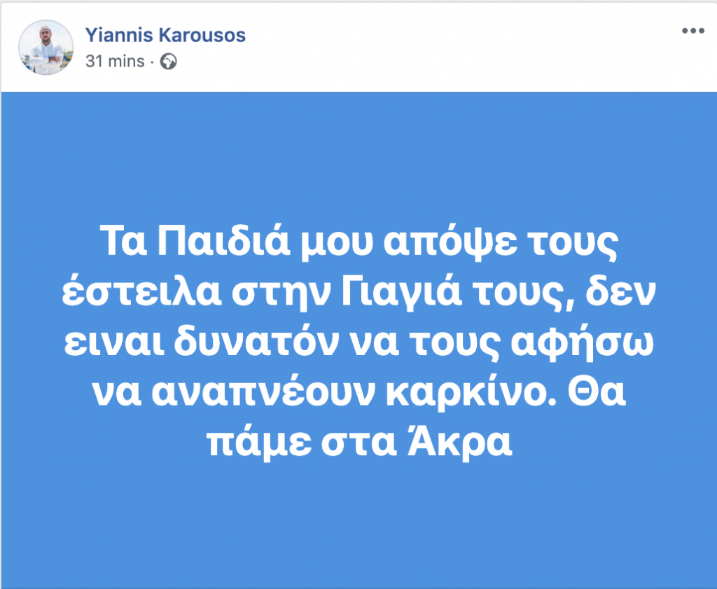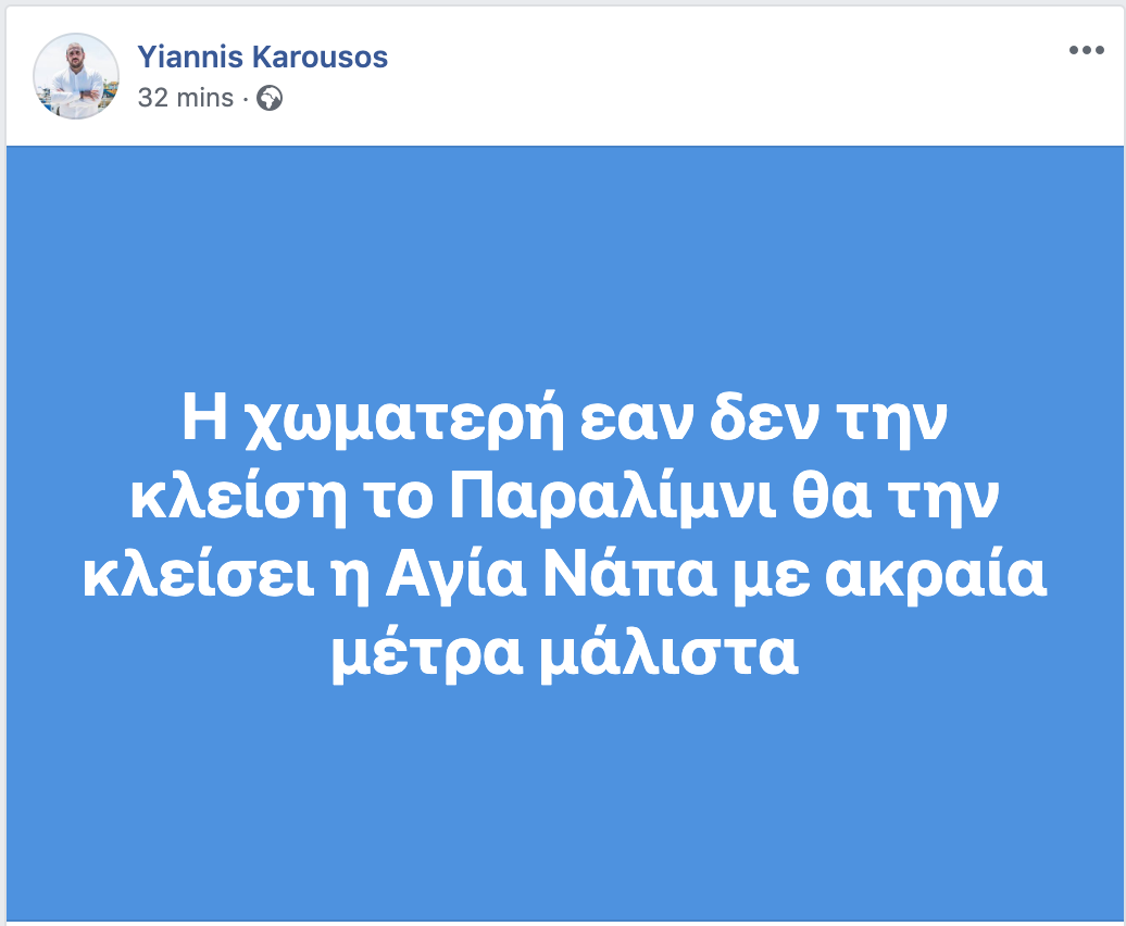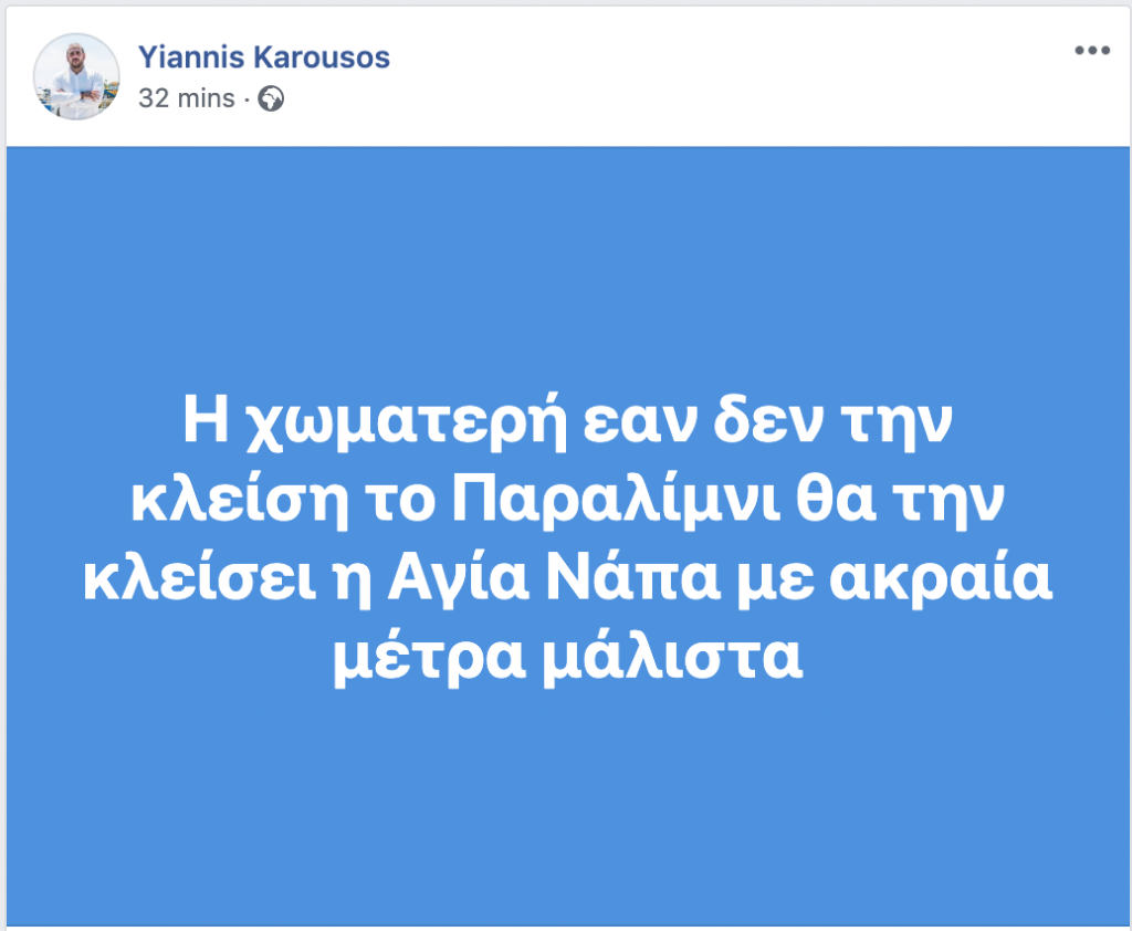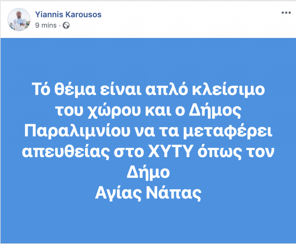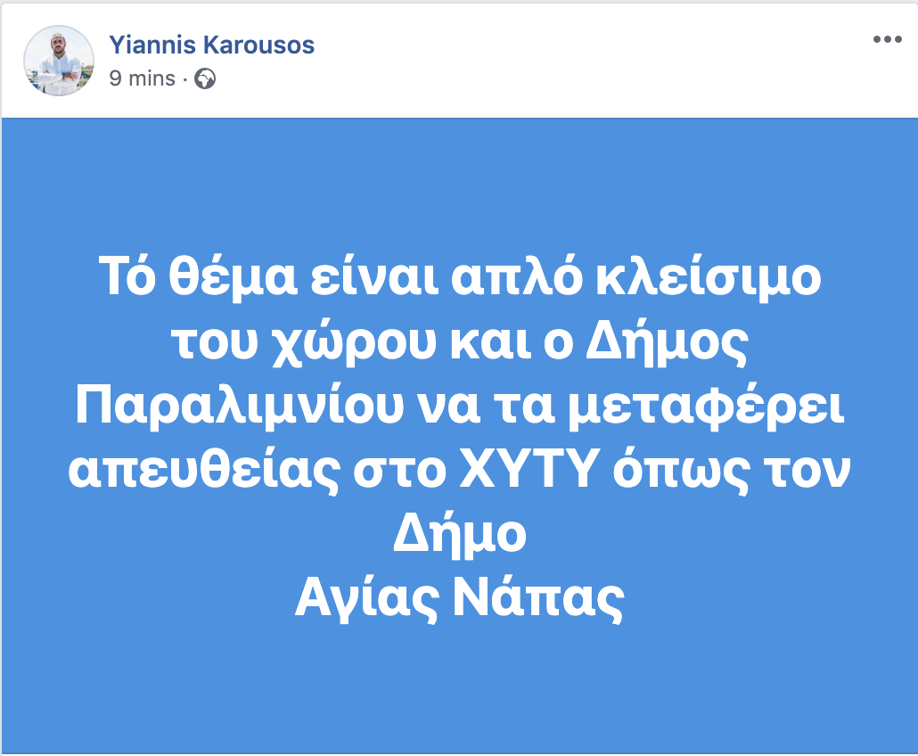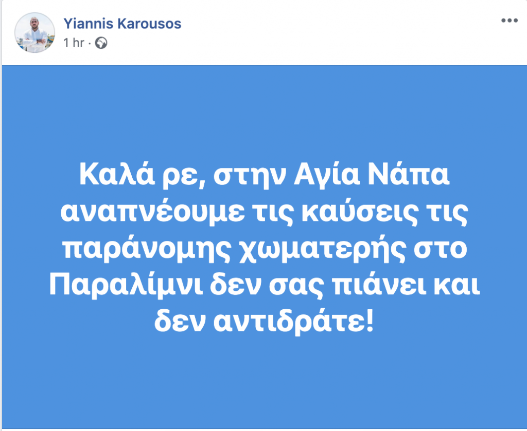 Δείτε αυτούσιες της αναρτήσεις του Δημάρχου Αγίας Νάπας κ. Γιάννη Καρούσου