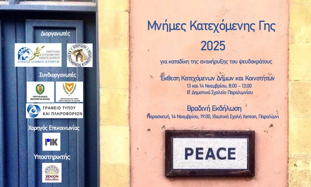 Η εκδήλωση «ΜΝΗΜΕΣ ΚΑΤΕΧΟΜΕΝΗΣ ΓΗΣ» θα γίνει την Παρασκευή 14 Νοεμβρίου 2025, 7.00 μ.μ. στην Ιδιωτική Σχολή «Xenion», Παραλίμνι