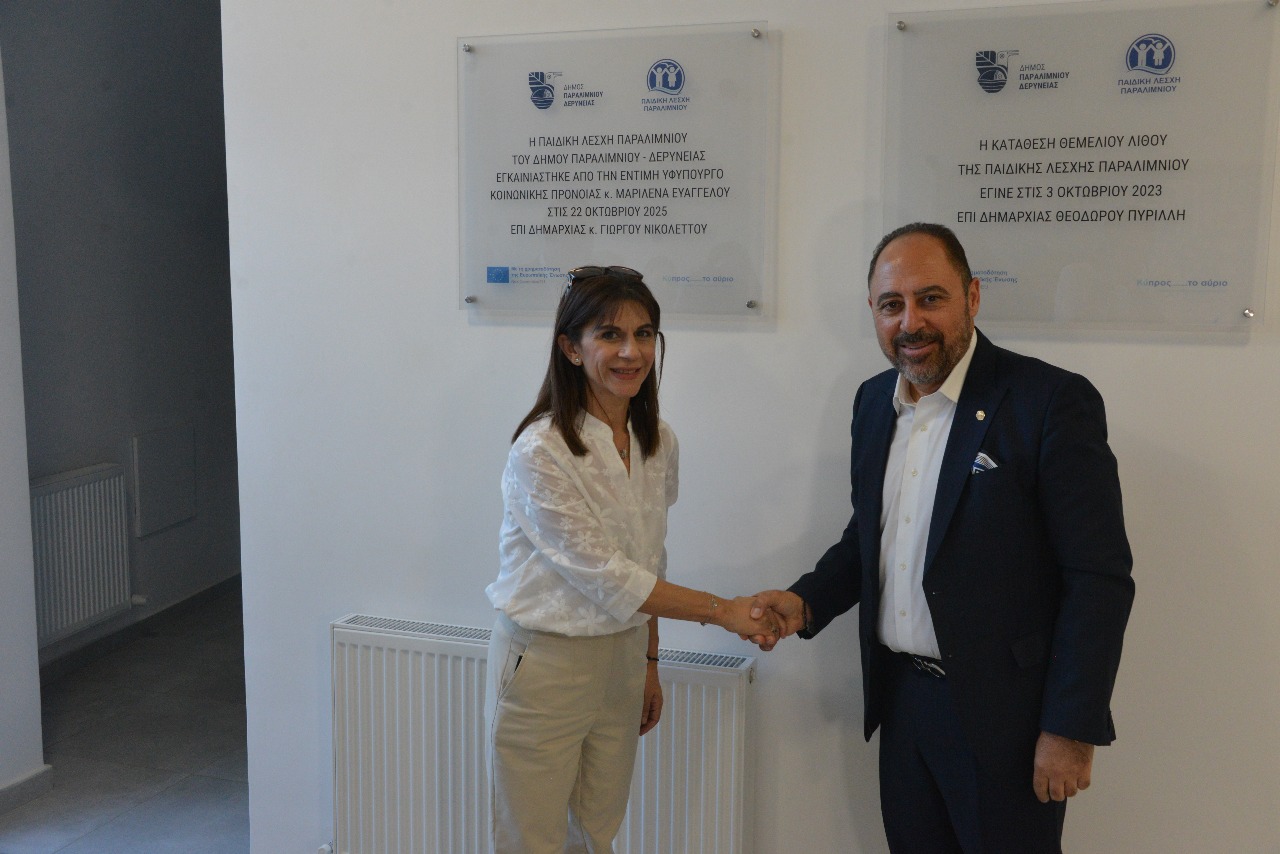 Τελέστηκαν το απόγευμα της Τετάρτης 22 Οκτωβρίου 2025 τα εγκαίνια της Παιδικής Λέσχης Παραλιμνίου. Τα εγκαίνια τέλεσε μαζί με τον Δήμαρχο Παραλιμνίου – Δερύνειας κ. Γιώργο Νικολέττο η Υφυπουργός Κοινωνικής Πρόνοιας κ. Μαριλένα Ευαγγέλου.