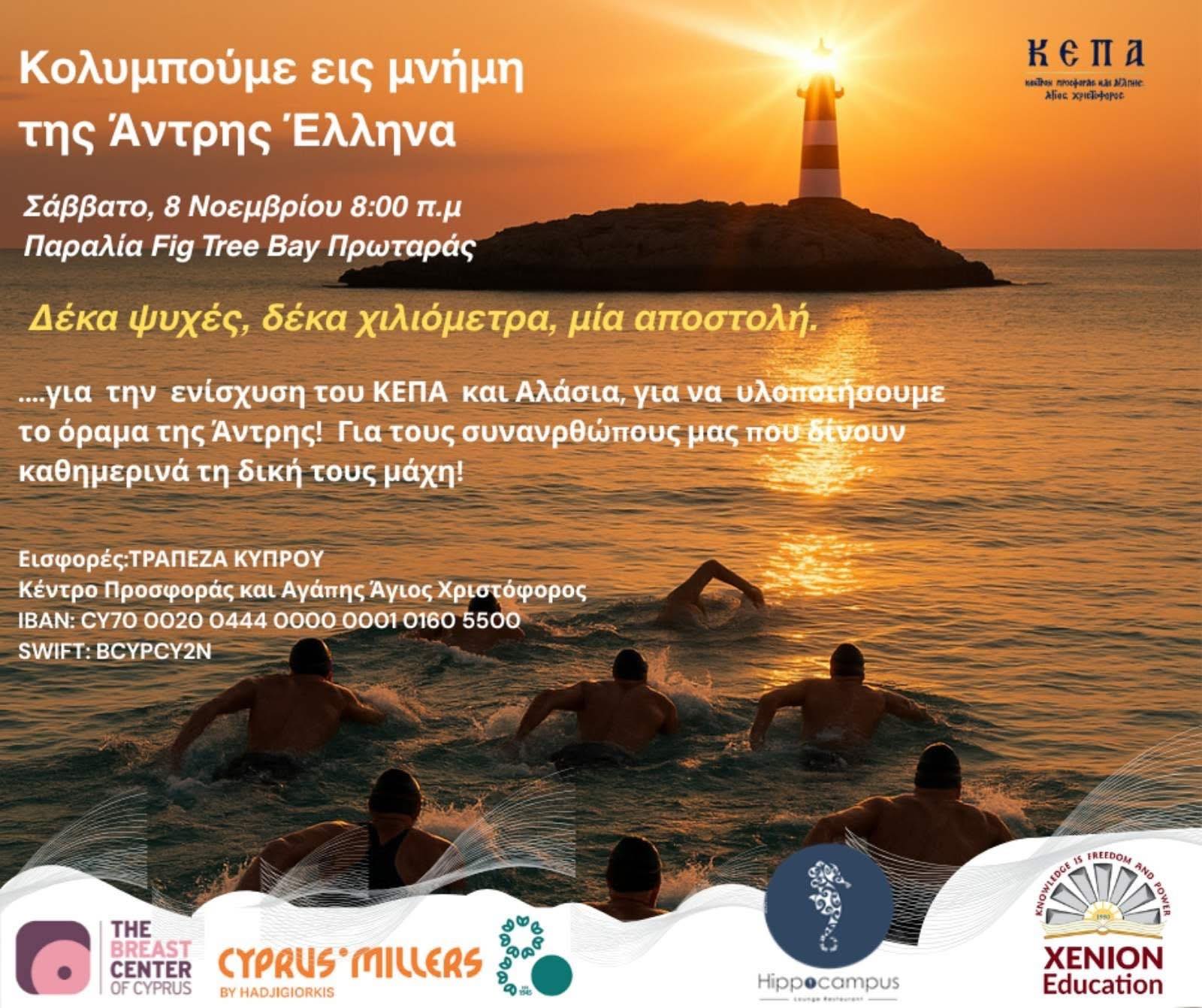 Κολυμπούμε εις μνήμη της Άντρης Έλληνα το Σάββατο, 8 Νοεμβρίου – 8:00 π.μ. στην Παραλία Fig Tree Bay, Πρωταράς