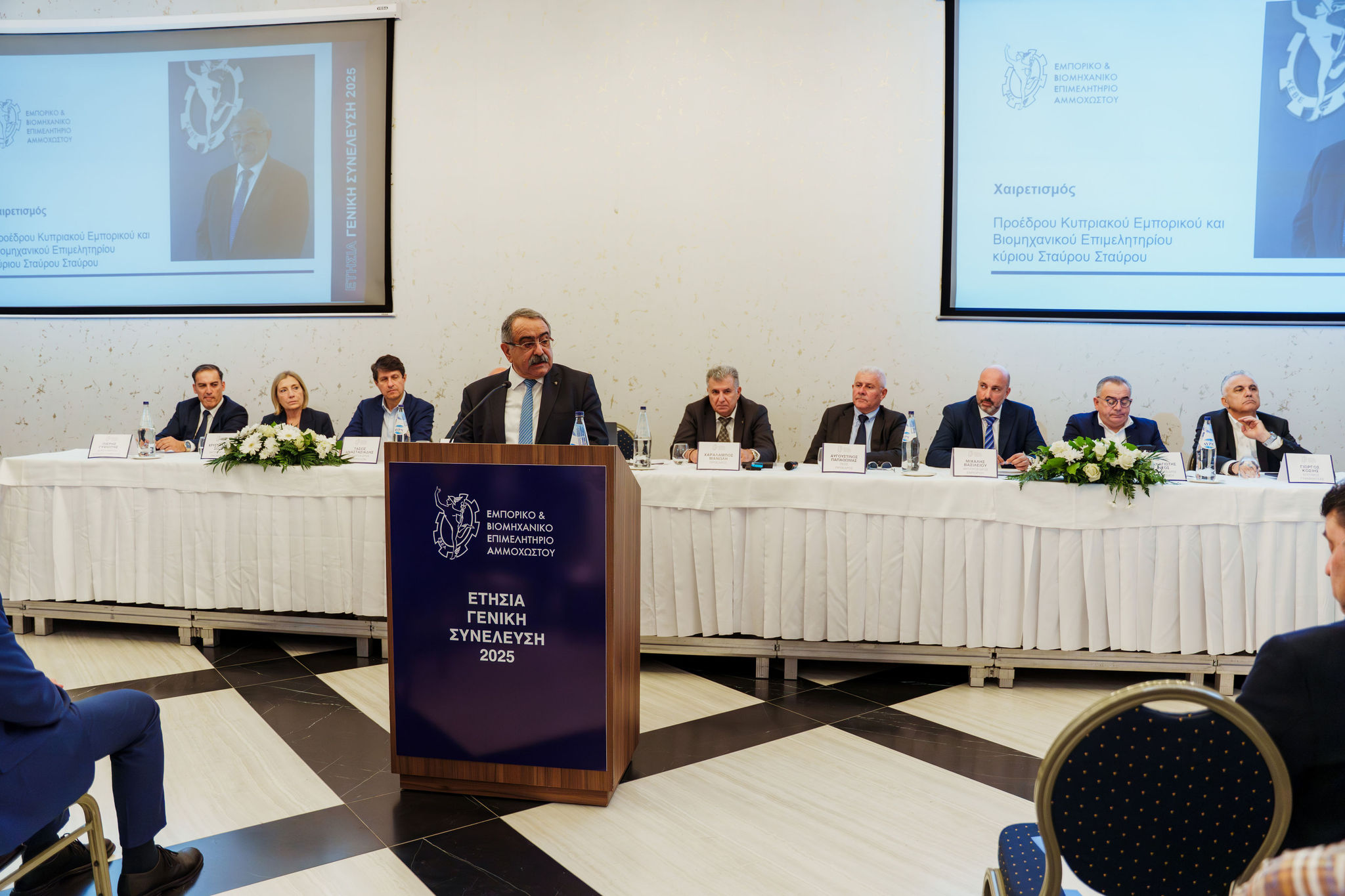 Πραγματοποιήθηκε την Τρίτη 18 Νοεμβρίου 2025, στο ξενοδοχείο NissiBlu Beach Resort στην Αγία Νάπα, η Ετήσια Γενική Συνέλευση του Εμπορικού και Βιομηχανικού Επιμελητηρίου Αμμοχώστου (ΕΒΕΑ).
