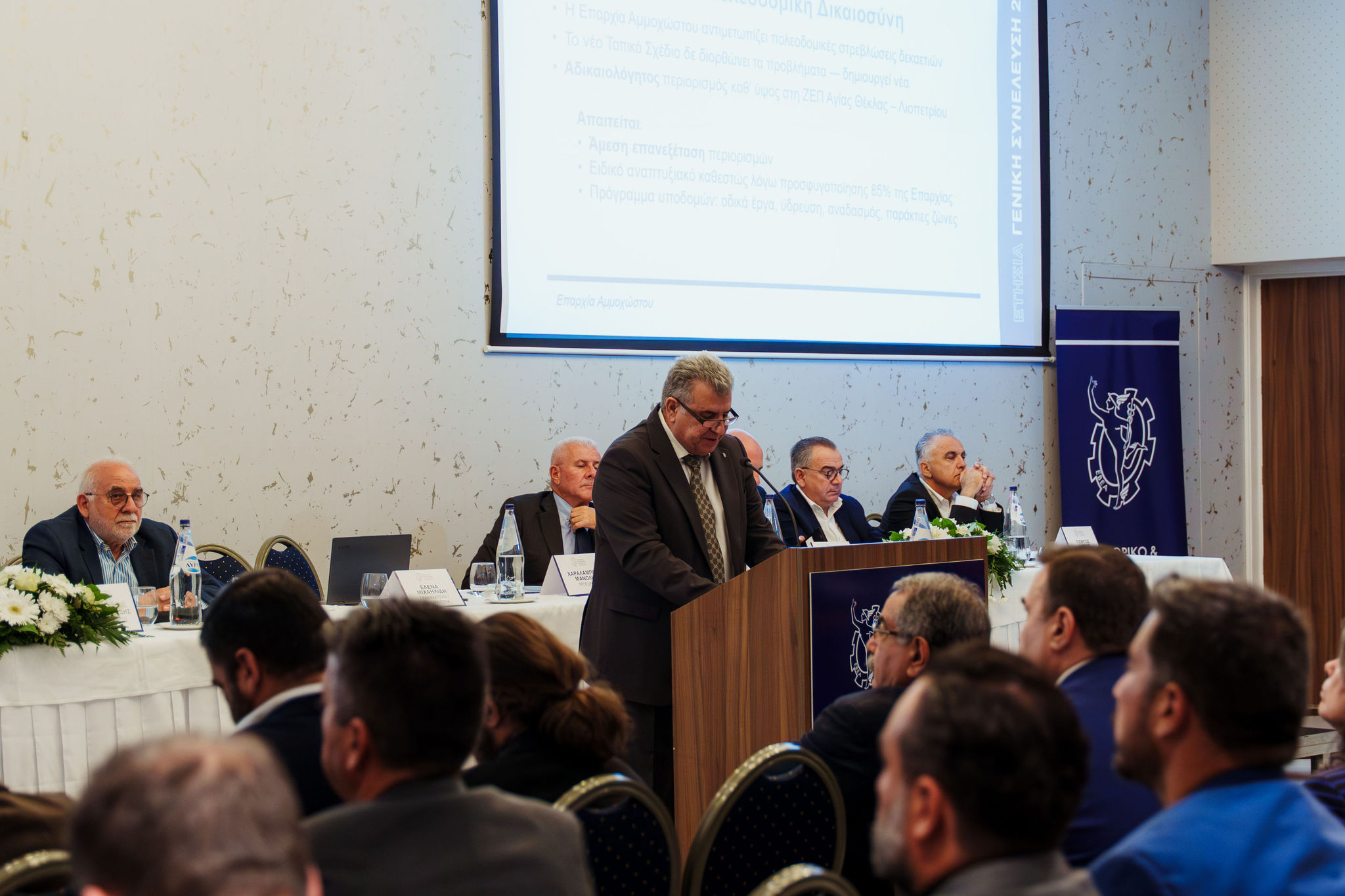Ο κ. Σταύρου τόνισε την ανθεκτικότητα και την αναπτυξιακή δυναμική της περιοχής, σημειώνοντας ότι με σωστό σχεδιασμό και στήριξη, μπορεί να μετατραπεί σε πρότυπο βιώσιμης περιφερειακής ανάπτυξης, μεταξύ άλλων, μέσω πράσινων μεταφορών, αγροδιατροφικής καινοτομίας και τουρισμού τεσσάρων εποχών. Ο κ. Τουμαζής, από την πλευρά του αναφέρθηκε στη δημιουργικότητα των Αμμοχωστιανών επιχειρηματιών παρά τις συνθήκες της προσφυγιάς, εκφράζοντας την ευχή η επόμενη Γενική Συνέλευση του ΕΒΕΑ να πραγματοποιηθεί στην πόλη της Αμμοχώστου.