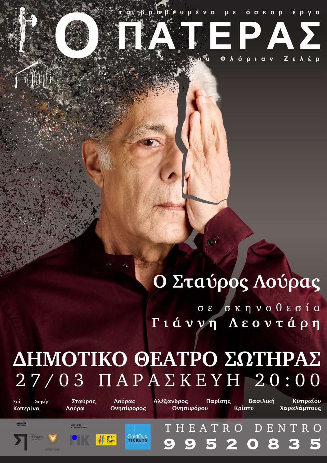 Μία μοναδική θεατρική εμπειρία θα έχουν την ευκαιρία να απολαύσουν οι θεατρόφιλοι της Επαρχίας Αμμοχώστου, καθώς το συγκλονιστικό και πολυβραβευμένο έργο «Ο Πατέρας» (Le Père) παρουσιάζεται για μία μόνο παράσταση την Παρασκευή 27 Μαρτίου στις 20:00 στο Δημοτικό Θέατρο Σωτήρας.