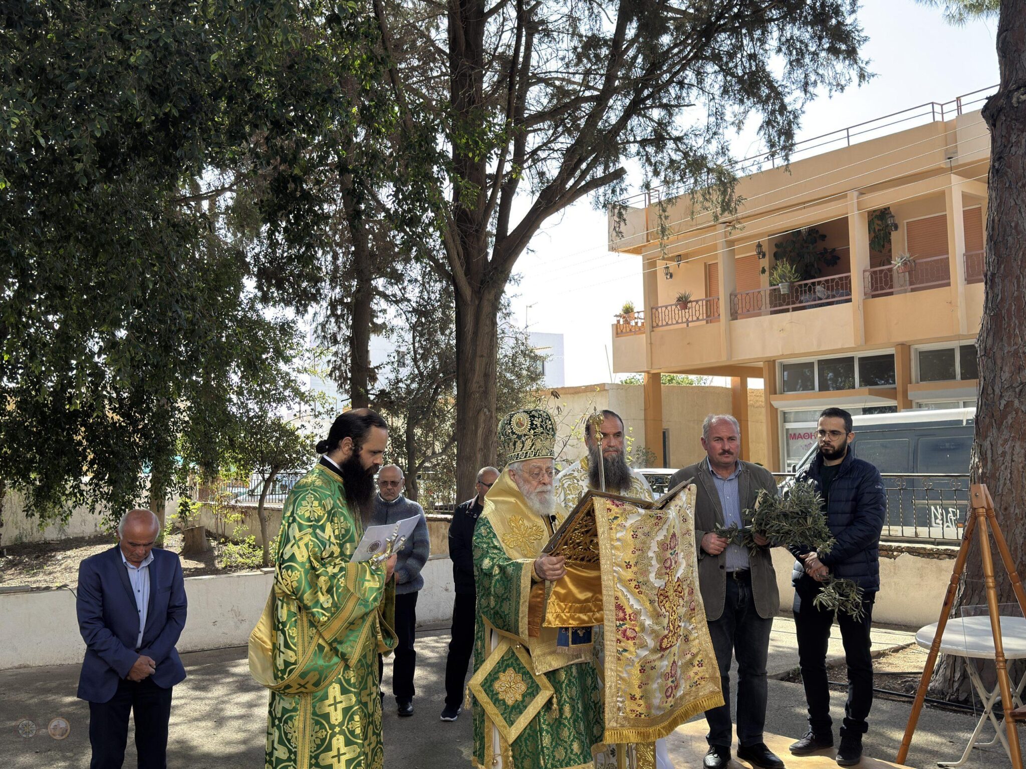 Μετά την Θεία Λειτουργία ακολούθησε η λιτανεία γύρω από το ναό και η τελετή της ευλογίας των κλάδων της ελαίας.
