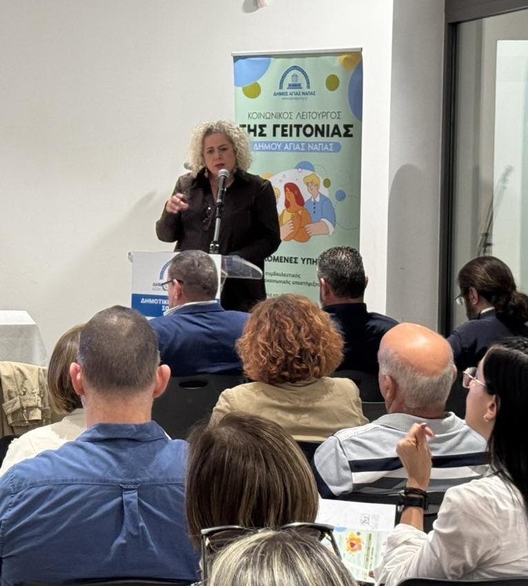 Με ιδιαίτερη επιτυχία πραγματοποιήθηκε την Πέμπτη 16 Οκτωβρίου 2025, στο Κέντρο Κοινωνικών Παροχών του Δημοτικού Διαμερίσματος Σωτήρας, η ενημερωτική εκδήλωση με τίτλο «Κοινότητες σε Μετάβαση: Ο Κοινωνικός Λειτουργός ως Καταλύτης Αλλαγής», την οποία συνδιοργάνωσαν ο Δήμος Αγίας Νάπας και το Δημοτικό Διαμέρισμα Σωτήρας, σε συνεργασία με τις Υπηρεσίες Κοινωνικής Ευημερίας. Την εκδήλωση ξεκίνησε με χαιρετισμό ο Αντιδήμαρχος του Δημοτικού Διαμερίσματος Σωτήρας, κ. Αντώνης Κουμής, ο οποίος αναφέρθηκε στη σημασία του προγράμματος και στον ρόλο του Δήμου Αγίας Νάπας ως πρωτοπόρου στην εφαρμογή δράσεων κοινωνικής πολιτικής που φέρνουν τις υπηρεσίες πιο κοντά στους δημότες. Ακολούθησε η Επόπτρια του Προγράμματος, κα. Κούλλα Ερωτοκρίτου, η οποία μίλησε για τον ρόλο του Κοινωνικού Λειτουργού της Γειτονιάς ως γέφυρα επικοινωνίας ανάμεσα στον πολίτη και τις υπηρεσίες, αλλά και ως παράγοντα ενδυνάμωσης και συνοχής μέσα στην κοινότητα.