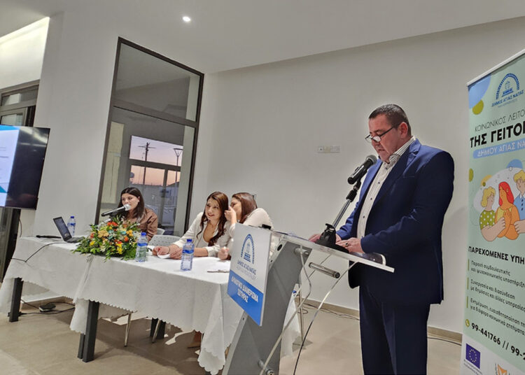 Η εκδήλωση πραγματοποιήθηκε με αφορμή τη συμπλήρωση δέκα μηνών από την έναρξη του προγράμματος «Κοινωνικός Λειτουργός της Γειτονιάς» του Δήμου Αγίας Νάπας, ενός καινοτόμου προγράμματος κοινωνικής πολιτικής και τοπικής συνεργασίας που έχει ως στόχο την ενδυνάμωση των πολιτών και την ενίσχυση της κοινωνικής συνοχής σε επίπεδο κοινότητας.