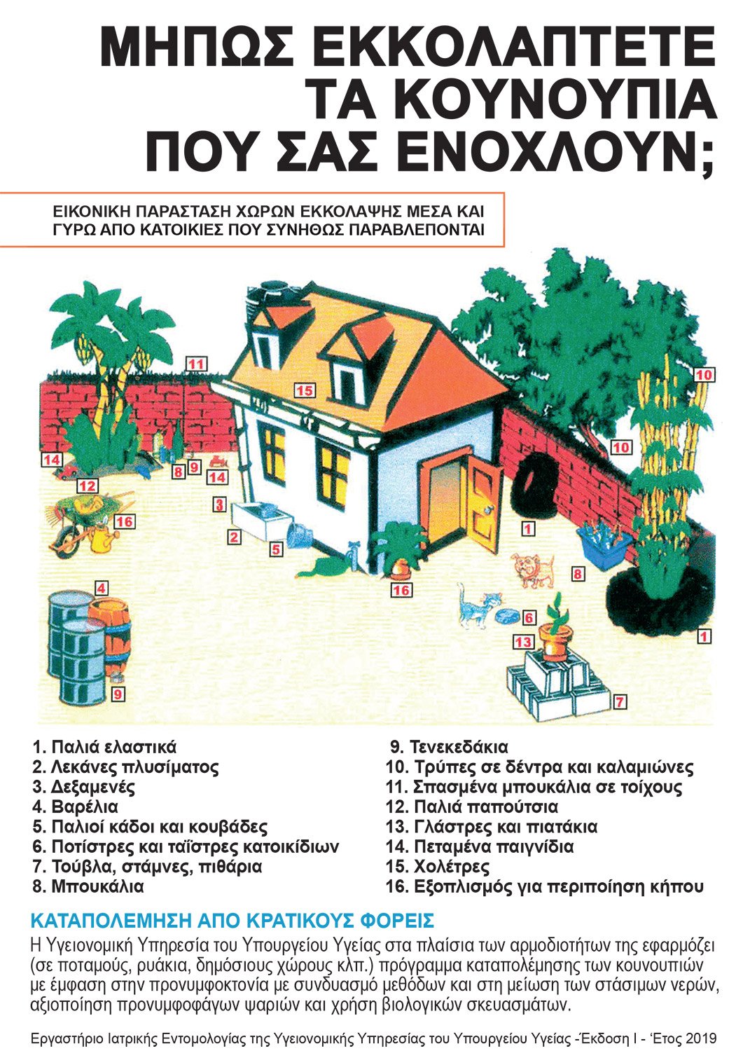 Ειδοποιούνται οι ιδιοκτήτες ή υπεύθυνα πρόσωπα κατοικιών και άλλων υποστατικών της περιοχής του Δήμου Σωτήρας να προβούν σε απομάκρυνση στάσιμων νερών από υπόγεια ή αυλές οικιών/ πολυκατοικιών/ κολυμβητικών δεξαμενών εκτός λειτουργίας, με στόχο την αποτροπή της πρόσβασης των κουνουπιών σε λιμνάζοντα νερά, που αποτελούν σημείο εναπόθεσης των αυγών τους και μπορεί να εκκολάψουν χιλιάδες κουνούπια, τα οποία να επηρεάσουν όλη την περιοχή.