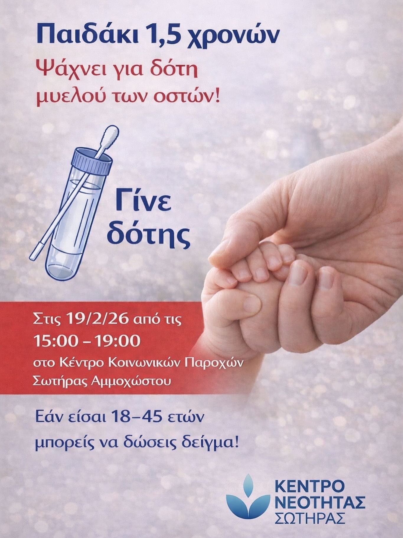 Αν είσαι 18–45 ετών, μπορείς να βοηθήσεις στις 19/02/2026 | 15:00–19:00 στο Κέντρο Κοινωνικών Παροχών Σωτήρας Αμμοχώστου.