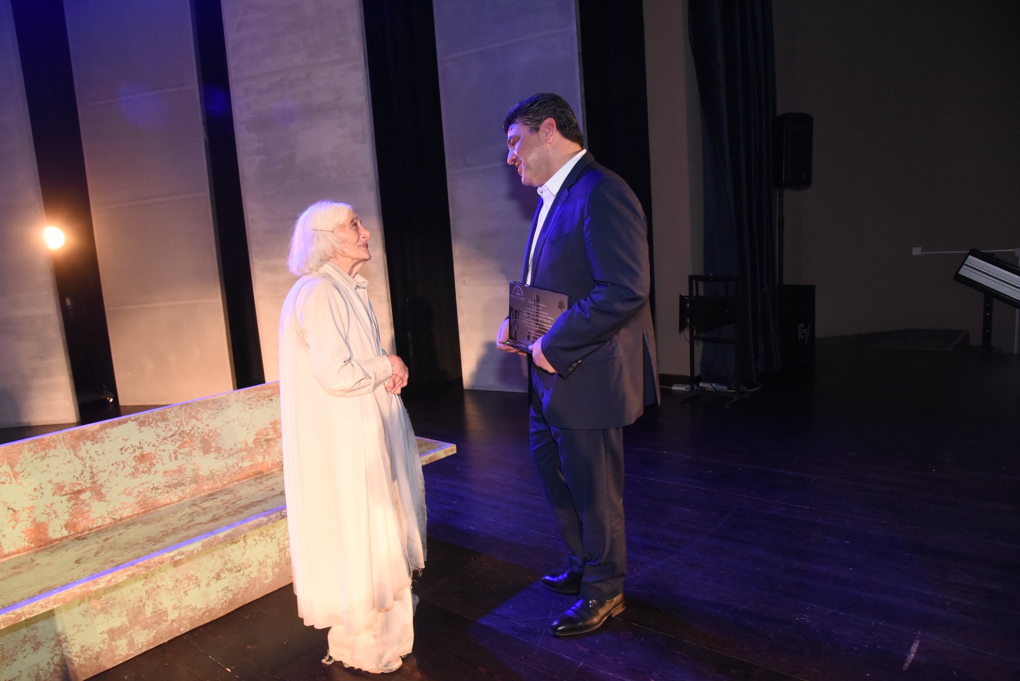 Πριν από την έναρξη της παράστασης, ο Δήμαρχος Αγίας Νάπας κ. Χρίστος Ζαννέττου τίμησε τη σπουδαία ηθοποιό, απονέμοντάς της αναμνηστική πλακέτα ως ελάχιστη αναγνώριση της σημαντικής προσφοράς της στα θεατρικά δρώμενα του τόπου μας και ευρύτερα στον Κυπριακό Πολιτισμό.