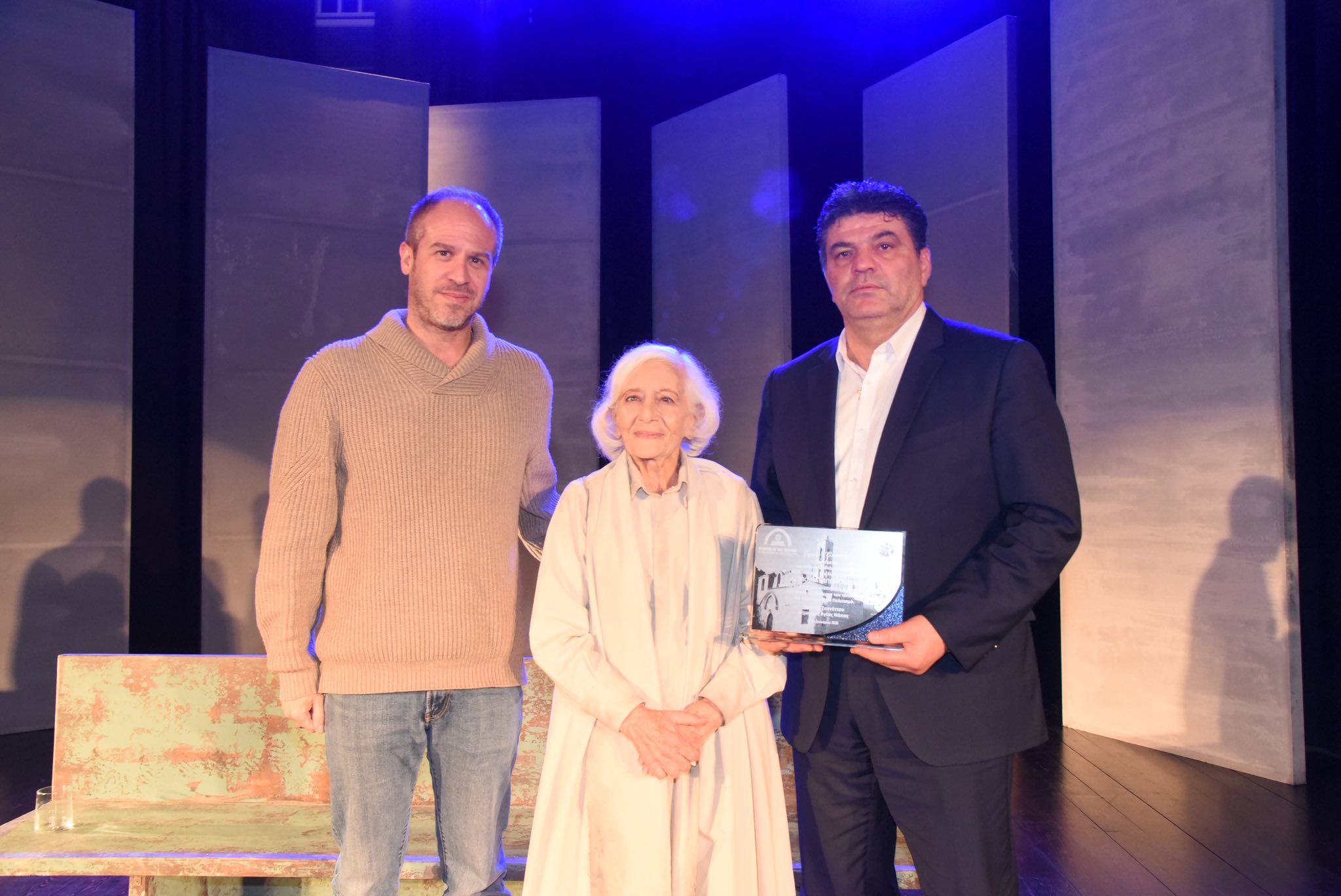 Πριν από την έναρξη της παράστασης, ο Δήμαρχος Αγίας Νάπας κ. Χρίστος Ζαννέττου τίμησε τη σπουδαία ηθοποιό, απονέμοντάς της αναμνηστική πλακέτα ως ελάχιστη αναγνώριση της σημαντικής προσφοράς της στα θεατρικά δρώμενα του τόπου μας και ευρύτερα στον Κυπριακό Πολιτισμό.