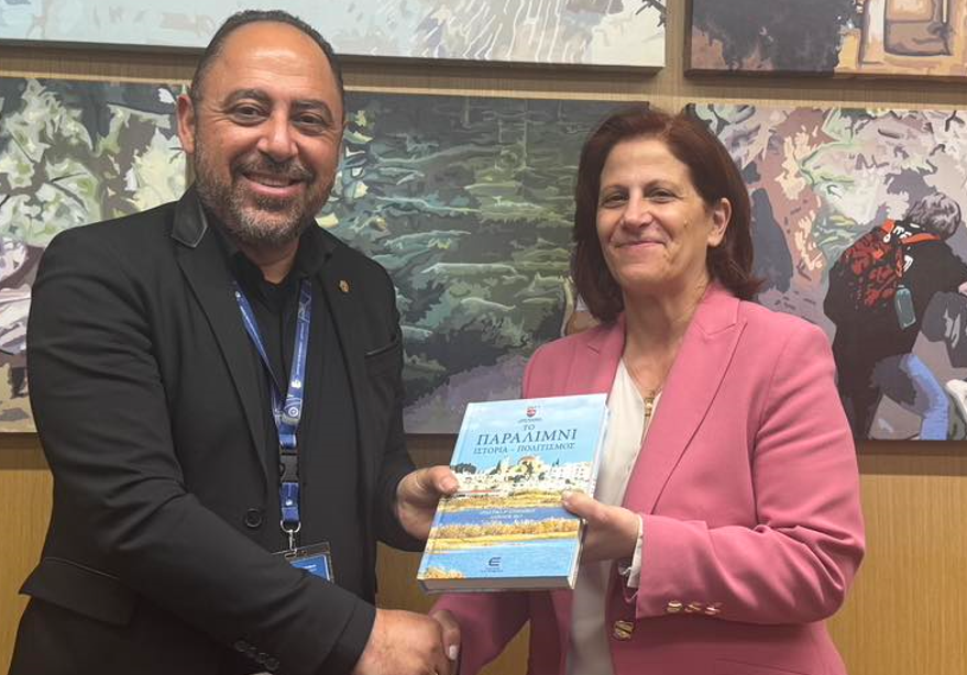 Ο Δήμαρχος Παραλιμνίου – Δερύνειας κ. Γιώργος Νικολέττος πραγματοποίησε την Πέμπτη 19 Μαρτίου 2026 συνάντηση με τη Διευθύντρια Αεροπορικής Ανάπτυξης, Μάρκετινγκ και Επικοινωνίας της Hermes Airports κ. Μαρία Κουρούπη, στο πλαίσιο επαφών για θέματα που αφορούν την επιβατική κίνηση, τη συνδεσιμότητα και τη γενικότερη συνεργασία.