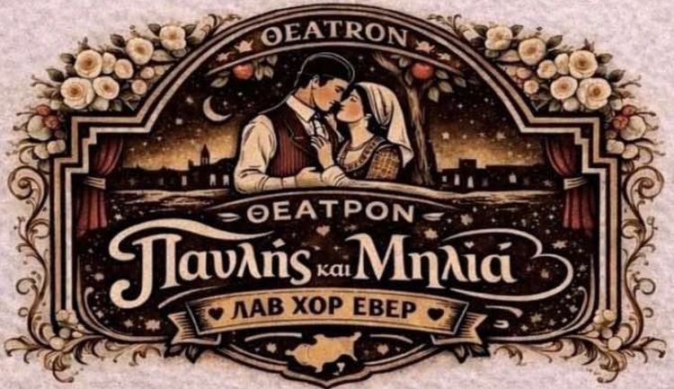 Ο Πολιτιστικός Όμιλος Αγίου Γεωργίου Βρυσούλλων Αχερίτου παρουσιάζει την Κυπριακή κωμωδία της Σκεύης Φουλή. Παυλής + Μηλιά = «Λαβ Χορ Εβερ» σε σκηνοθεσία Αντρέα Παπαδόπουλου την Παρασκευή 3 Απριλίου στις 8:00 Μ.Μ.