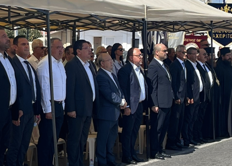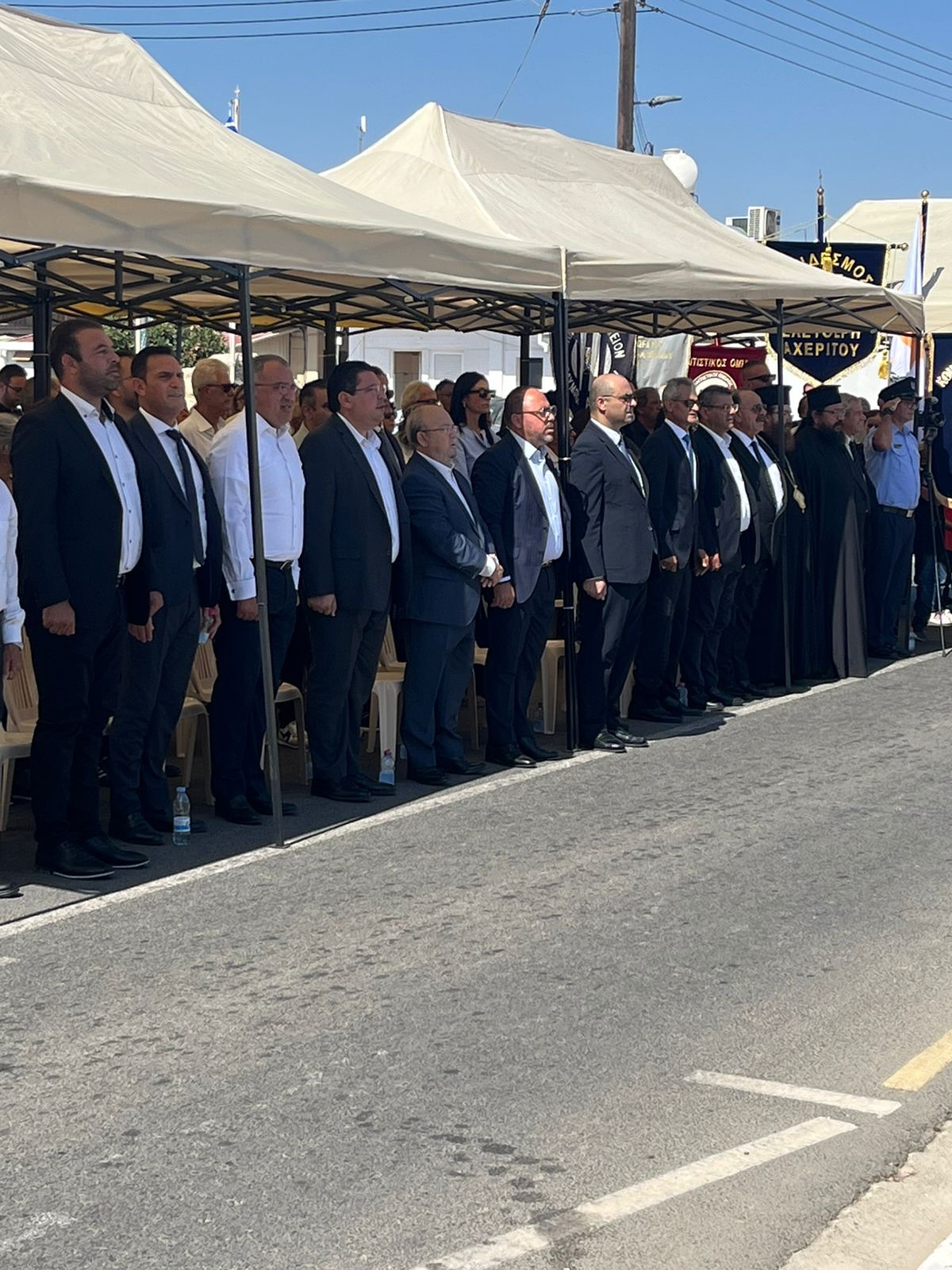 Ακολούθησε πορεία προς το Μνημείο Πεσόντων και Αγνοουμένων με τη συνοδεία της Συμφωνικής Μπάντας «Αρμονία» του Δήμου Παραλιμνίου – Δερύνειας, καθώς και τρισάγιο και κατάθεση στεφάνων.
