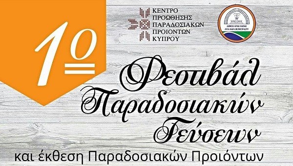Διεξάγεται την Παρασκευή και το Σάββατο 11 και 12 Αυγούστου 2017 στο δρόμο του Δημοτικού Μουσείου Αγίας Νάπας «Θάλασσα» το 1ο Φεστιβάλ Παραδοσιακών Γεύσεων και έκθεση Παραδοσιακών Προϊόντων, το οποίο διοργανώνουν το Κέντρο Προώθησης Παραδοσιακών Προϊόντων Κύπρου σε συνεργασία με τον Δήμο Αγίας Νάπας.