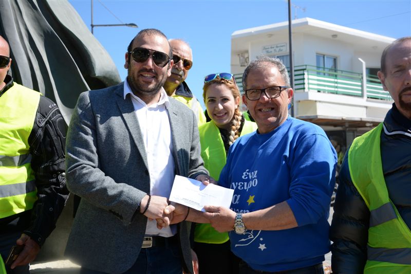 Οι δήμαρχοι Γεώργιος Τάκκας και Γιάννης Καρούσος υποδέχθηκαν τους συμμετέχοντες στους Δήμυος τους, παραδίδοντας στον Πρόεδρο του Συνδέσμου κύριο Γιώργο Πενηνταέξ, επιταγή εισφοράς, αποδεικνύοντας έμπρακτα την στήριξή τους στις δύσκολες δοκιμασίες που περνούν τα παιδιά και οικογένειές τους που βιώνουν τον αγώνα ενάντια στον καρκίνο.