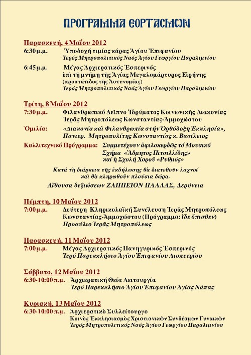 Δείτε αναλυτικά το πρόγραμμα των εορτασμών: