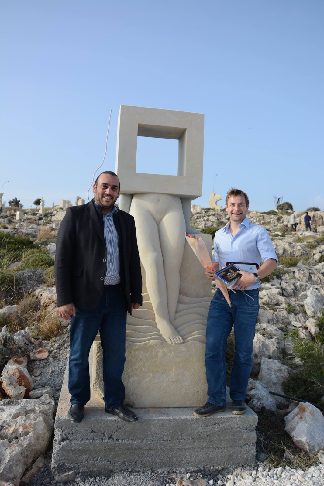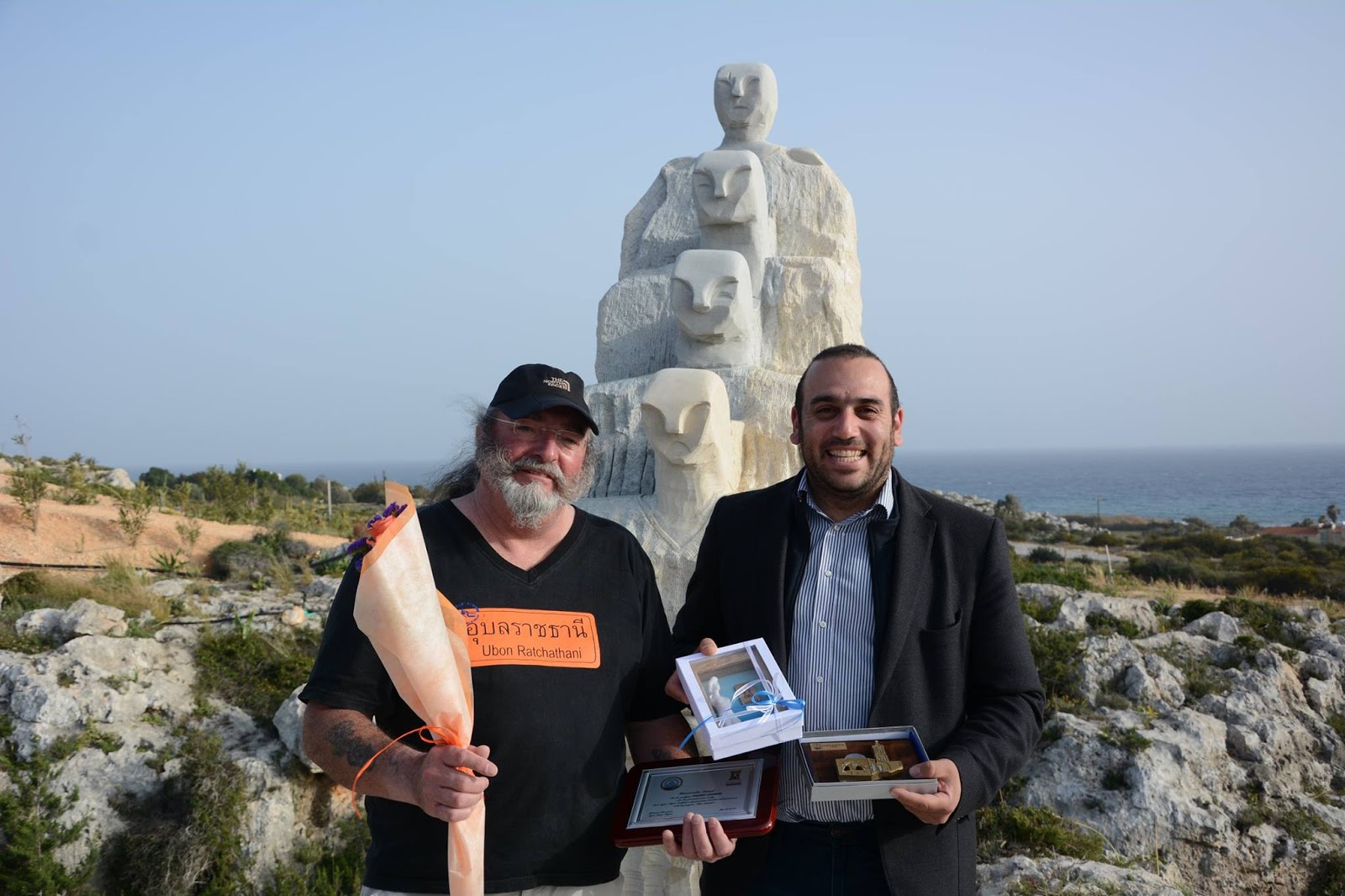 Οι εννέα καλλιτέχνες στους οποίου απονεμήθηκαν από τον κ. Καρούσο οι αναμνηστικές πλακέτες είναι οι ακόλουθοι: Η Beata Rostas από την Ουγγαρία η οποία φιλοτέχνησε το έργο «Exile», o Emin Petrosyan από την Αρμενία με το έργο «Dream», o Γάλλος Gilles Vitaloni, ο οποίος δημιούργησε το γλυπτό «Armonie of Modern World», o επίσης Γάλλος καλλιτέχνης Pellini Gerard με το έργο «Hippopotamus», ο Roland Hoft από τη Γερμανία με το έργο «The View», οι Ρώσοι γλύπτες Sergei Lopukhov και Vladimir Ubasev με τα έργα «Siren» και «Aphrodite Cypridina», o Βέλγος Thierry Lauwers με το έργο «The Anemoi» και ο Valentino Giampaoli από την Ιταλία, ο οποίος φιλοτέχνησε το έργο «Icaro».