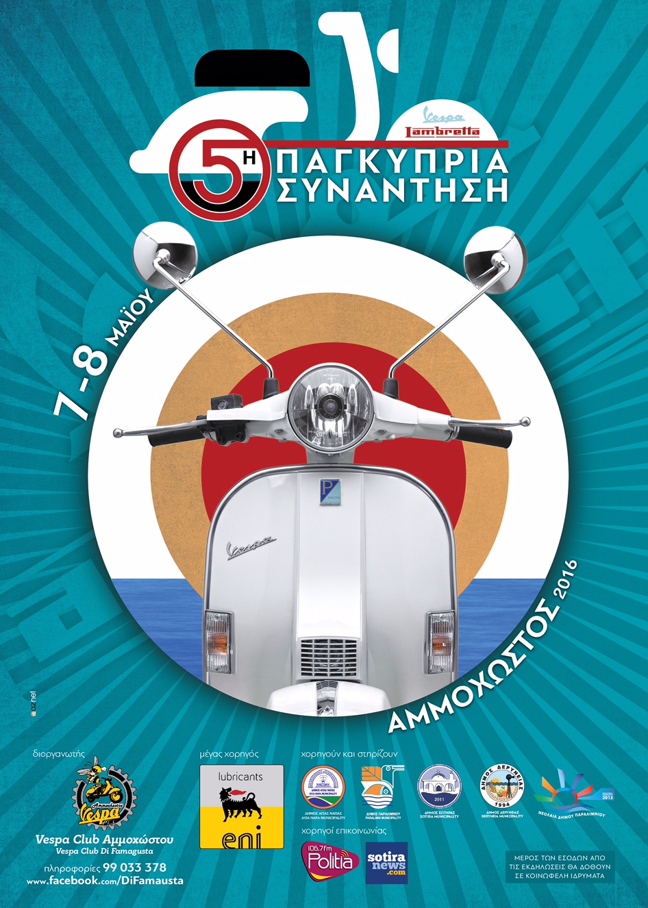 Η 5η Παγκύπρια Συνάντηση Vespa – Lambretta θα πραγματοποιηθεί το Σαββατοκύριακο 7-8 Μαΐου 2016 στην Επαρχία Αμμοχώστου.