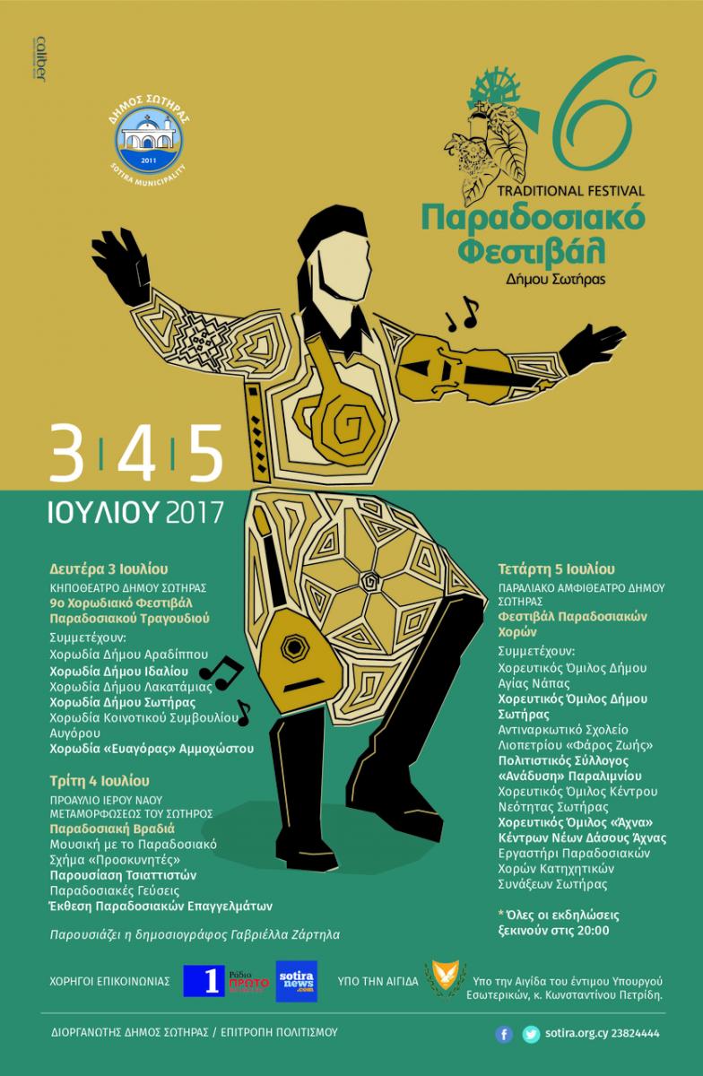 Η Επιτροπή Πολιτισμού του Δήμου Σωτήρας διοργανώνει και φέτος, κατά το τριήμερο 3-5 Ιουλίου 2017 το 6ο Παραδοσιακό Φεστιβάλ Δήμου Σωτήρας.