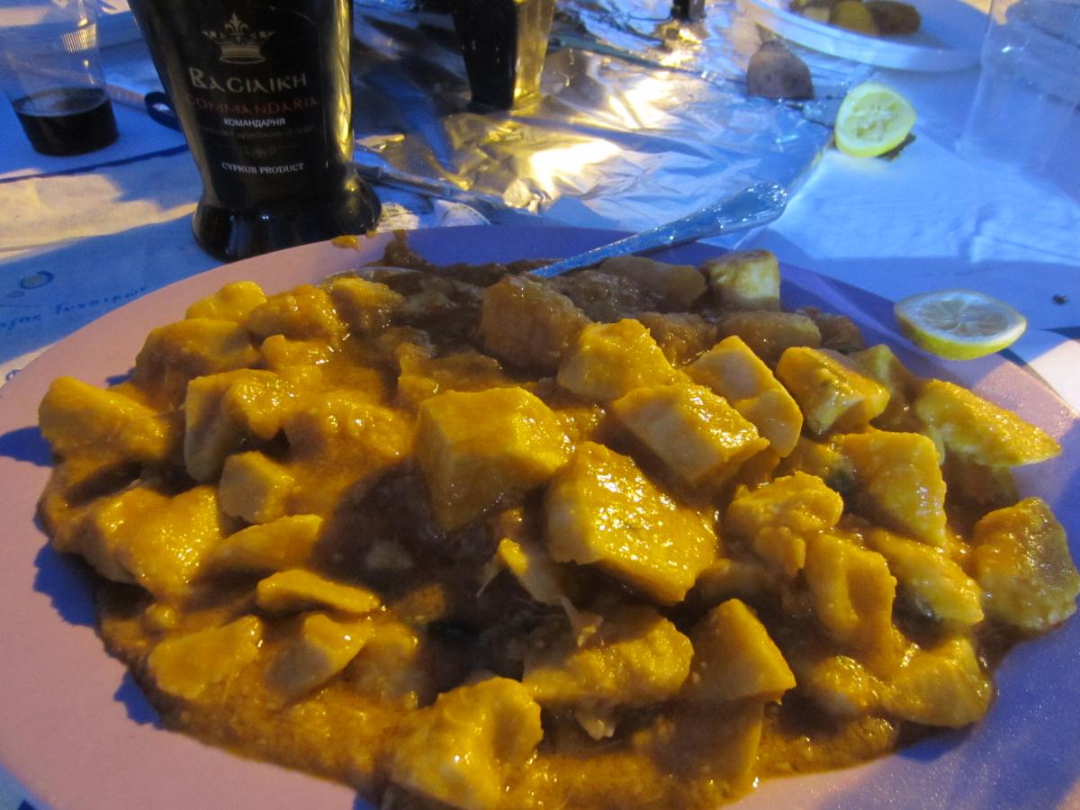 Τα τραπέζια στήθηκαν, οι φωτιές άναψαν, οι κατσαρόλες ετοιμάστηκαν και οι γυναίκες του συλλόγου μαγείρεψαν το περίφημο κολοκάσι με δύο τρόπους, το γνωστό μας γιαχνί αλλά και τηγανητό που γεύτηκαν οι παρευρισκόμενοι. Το κολοκάσι συνόδευσαν με καθιστό χταποδάκι ενώ στα τραπέζια προσφέρθηκε κυπριακός σουτζιούκος, χαλούμι, παστελάκι, δάκτυλα κυριών, κυπριακά αρτοποιήματα κουλούρια, παξιμάδια, γλυσταρκές, λευκαρίτικο λουκούμι, τριαντάφυλλο και φυσικά κουμανταρία.