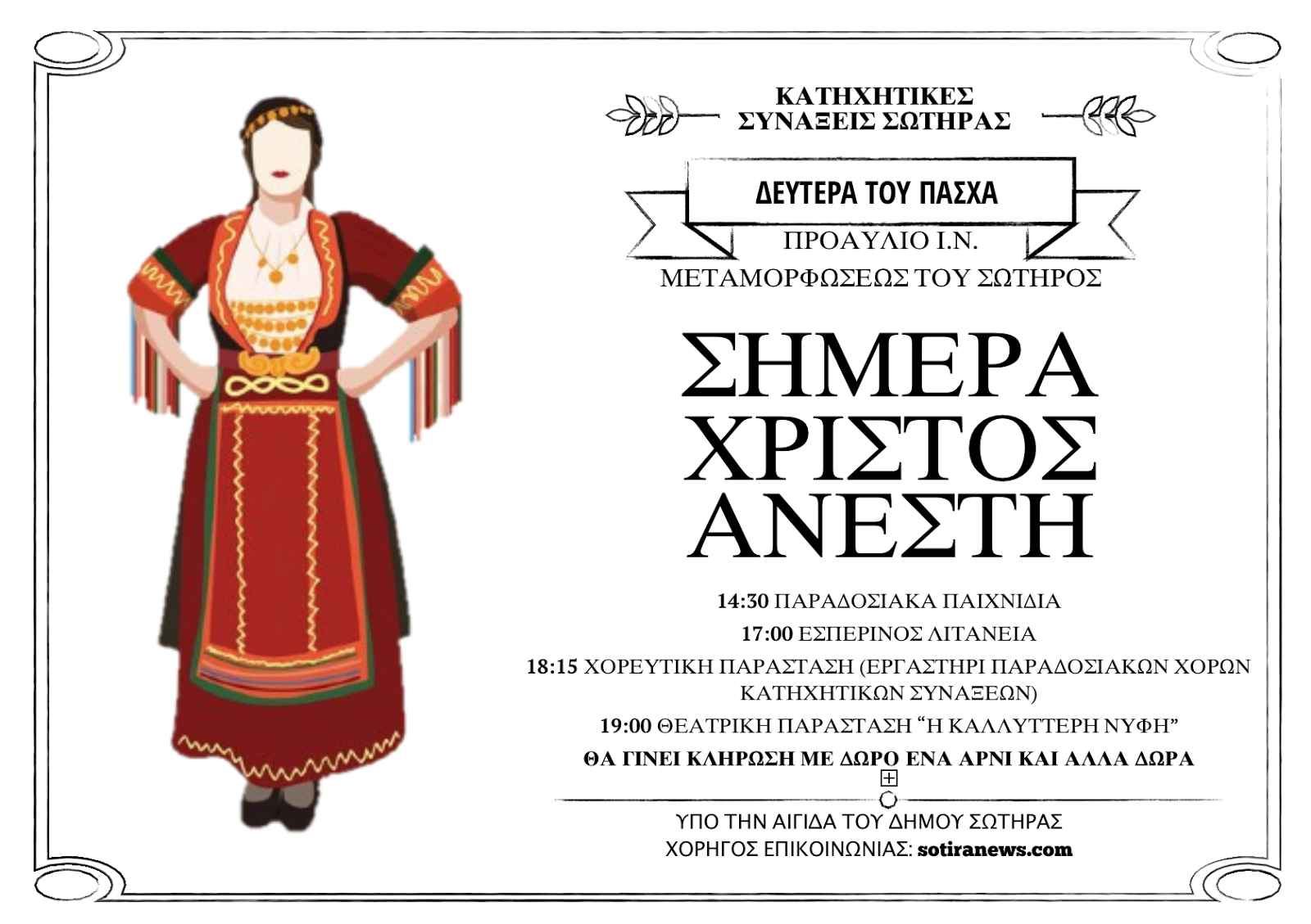 Η εκδήλωση ξεκινάει στις 2:30 το μεσημέρι της Δευτέρας του Πάσχα και θα πραγματοποιηθεί στο προαύλιο του Ιερού Ναού Μεταμορφώσεως του Σωτήρος.