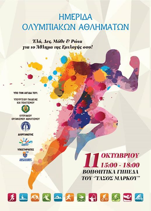 Της έναρξης της εκδήλωσης θα προηγηθεί το άναμμα της φλόγας στο Δημαρχείο Παραλιμνίου η ώρα 14:30 και το Σωματείο Δρομέων Κύπρου «Περικλής Δημητρίου» θα την μεταφέρει στον χώρο της εκδήλωσης, όπου η ώρα 15:00 θα σημάνει η έναρξη της «Ημερίδας Ολυμπιακών Αθλημάτων» με την είσοδο 50 και πλέον αθλητών της Κυπριακής Ομοσπονδίας Γυμναστικής. Την εκδήλωση θα χαιρετίσει ο αξιότιμος Πρόεδρος Ελλήνων Ολυμπιονικών με αναπηρία, κ. Σίμος Παλτσανιτίδης.