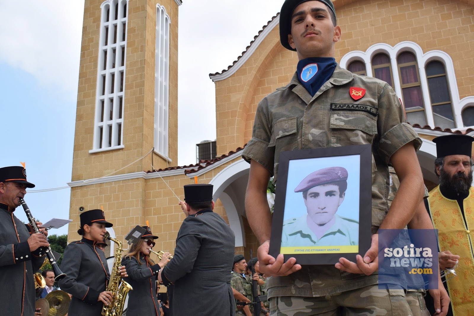 Με αισθήματα δέους και βαθιάς συγκίνησης συγκεντρωθήκαμε σήμερα εδώ στην εκκλησία του Αγίου Γεωργίου, στο Παραλίμνι, για να απευθύνουμε το ύστατο χαίρε σε ένα ακόμη συμπατριώτη μας που έπεσε υπέρ βωμών και εστιών προασπίζοντας την ελευθερία και την εδαφική ακεραιότητα της πατρίδας μας.