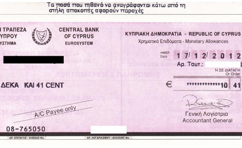 (Όπως φαίνεται στη φωτοτυπία, το ποσό που αναγράφεται είναι για κάλυψη αναγκών δύο μηνών, το ύψος του ποσού της μηνιαίας χορηγίας είναι €5 ευρώ.).
