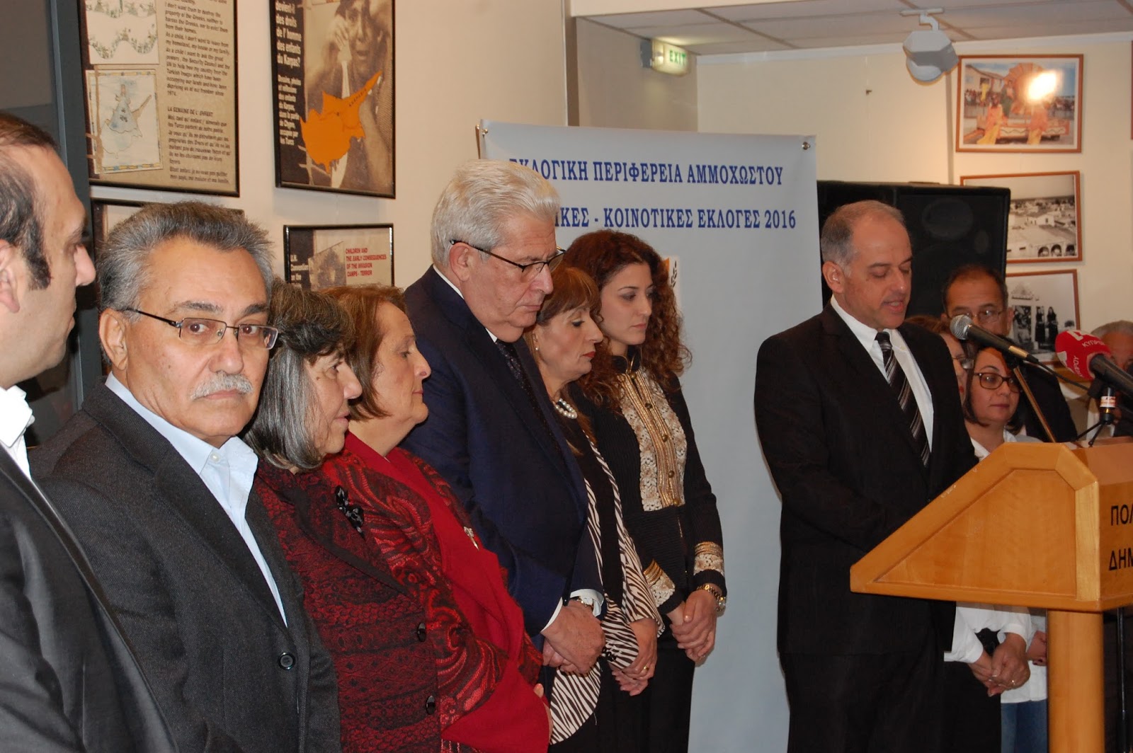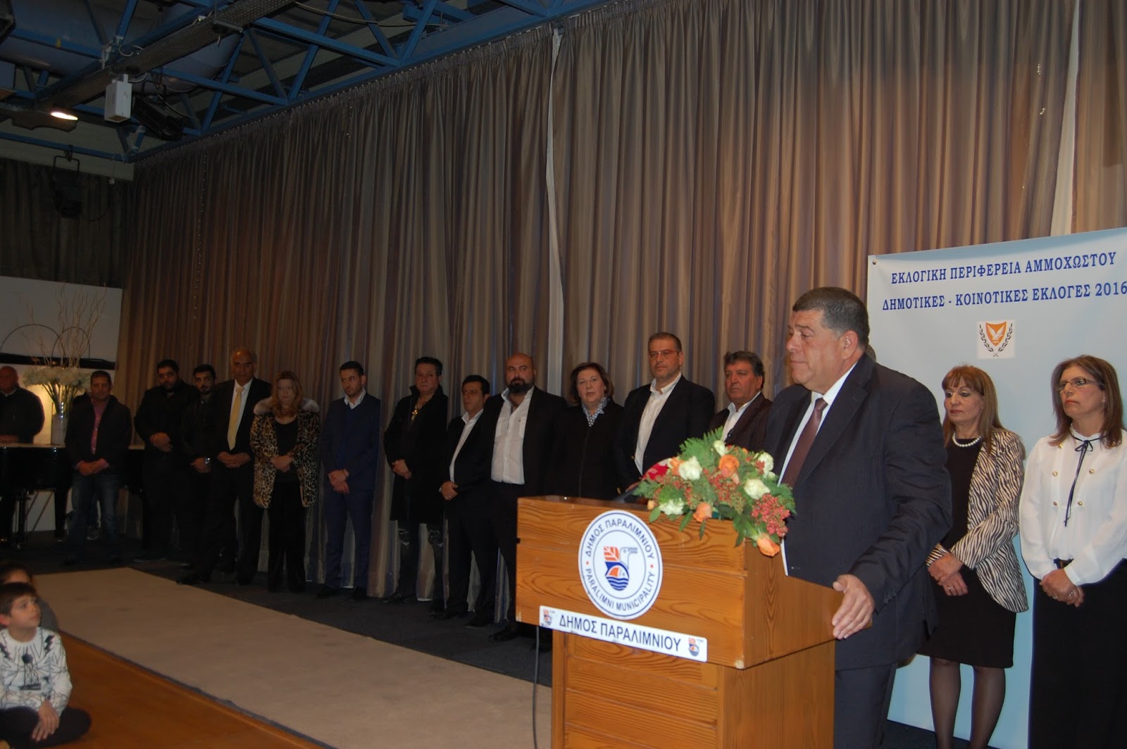 Το απόγευμα πραγματοποιήθηκε η ανακήρυξη των Δημάρχων των κατεχόμενων και των ελεύθερων Δήμων της επαρχίας στο Πολιτιστικό Κέντρο της Κατεχόμενης Αμμοχώστου στη Δερύνεια.