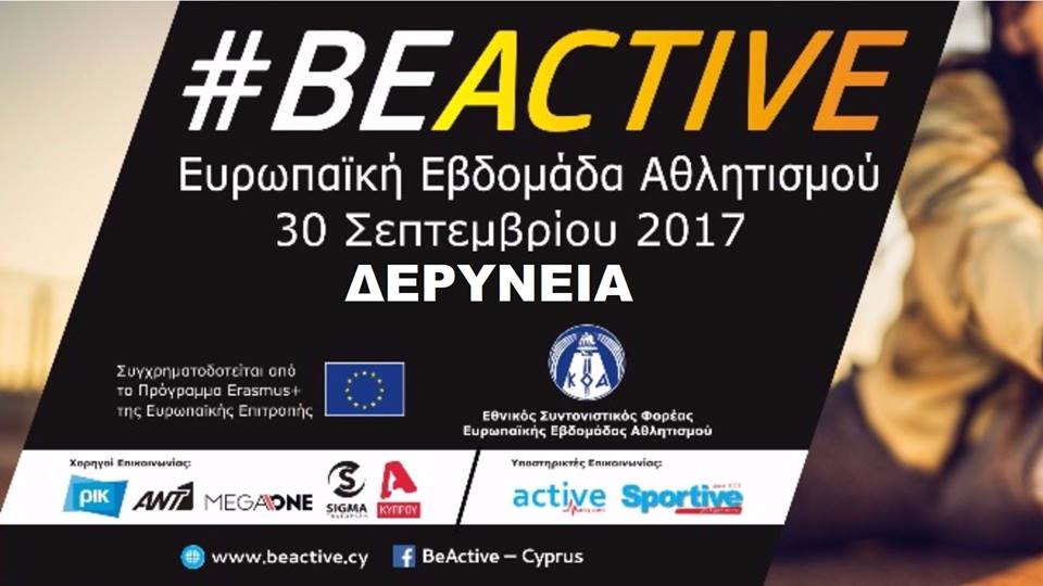 Στις 30 Σεπτεμβρίου το κέντρο της Δερύνειας βάζει τα αθλητικά του και για ένα τρίωρο μεταμορφώνεται σε ένα ανοικτό χώρο άθλησης και γνωριμίας με αθλήματα και άλλες αθλητικές δραστηριότητες. Κατά μήκος της λεωφόρου Αμμοχώστου, μπροστά από το εκκλησάκι του Αγίου Γεωργίου θα έχεις την ευκαιρία να έρθεις σε επαφή με διάφορα αθλήματα, όπως Football Dards, πινγκ-πονγκ, ο κύβος της δράσης, τέννις, πολεμικές τέχνες και πολλά άλλα…