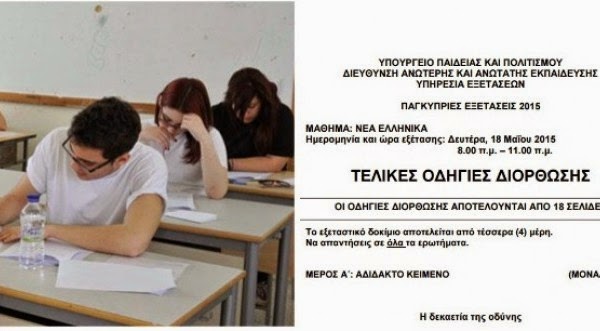Η εξέταση διεξήχθη την προηγούμενη Δευτέρα, ενώ την αμέσως επόμενη ημέρα θεματοθέτες και διορθωτές προέβησαν σε δειγματοληπτική διόρθωση γραπτών, για να διαπιστωθεί η ευρύτερη εικόνα και να δοθούν οι κατάλληλες οδηγίες για τη διόρθωση των γραπτών των υποψηφίων.