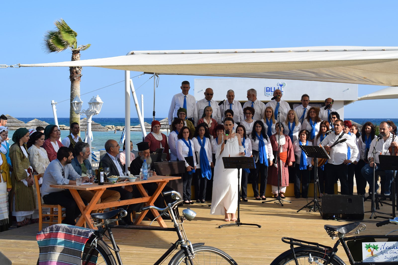 Σε ένα πλατό με μοναδική θέα δίπλα στην παραλία της Αγίας Θέκλας, τραγούδησε η Χορωδία του Δήμου Σωτήρας υπό την διεύθυνση του Λουκά Ζυμαρά και ο Χορευτικός Όμιλος του Δήμου Σωτήρας και η “Παράδοση Λιοπετρίου” οι οποίοι εμπλούτισαν το πρόγραμμα της εκπομπής.