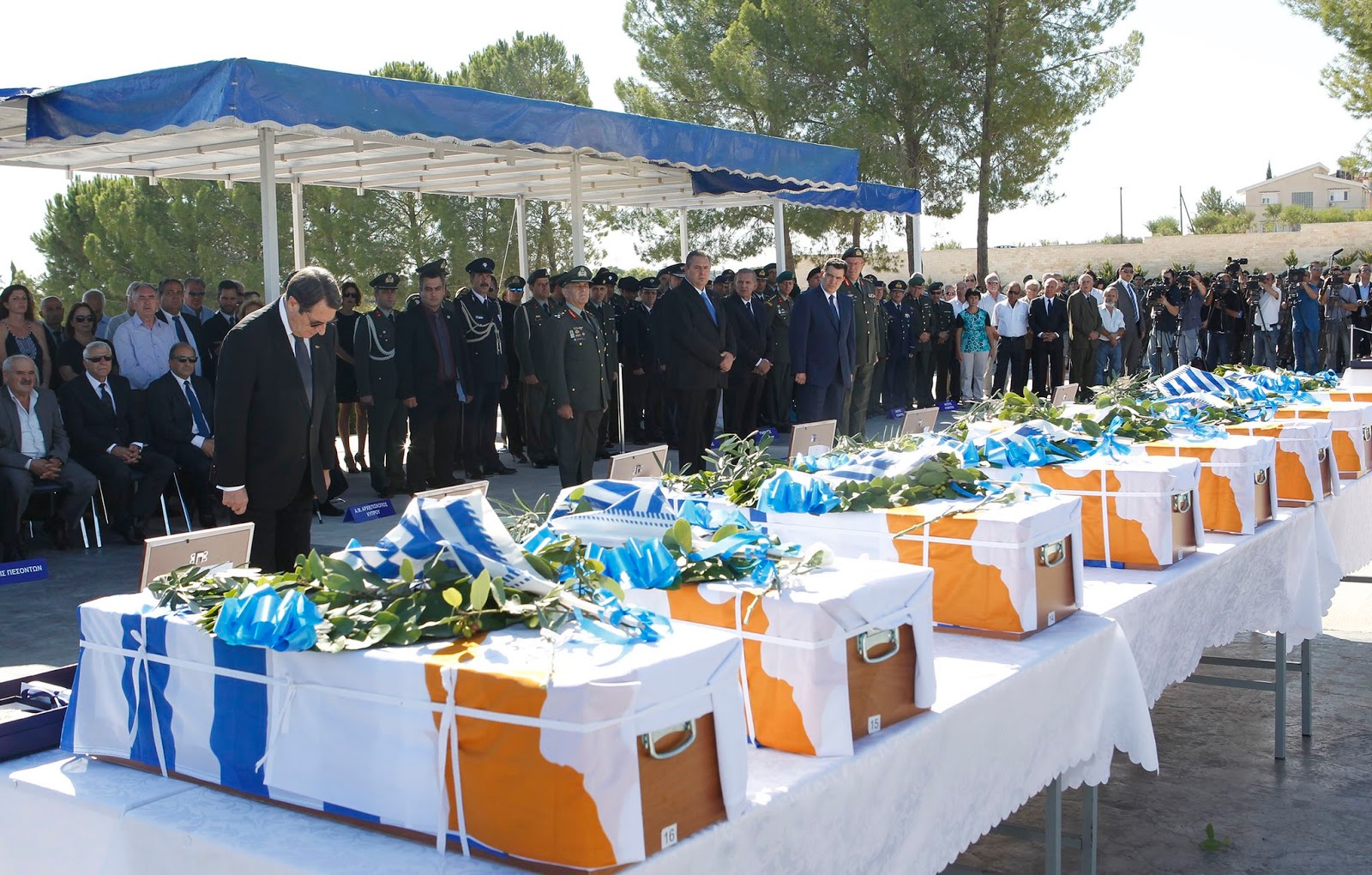 Είναι για αυτό που μας πληγώνει τόσο βαθιά εκείνο το λάθος. Για εκείνη τη μοιραία στιγμή που μέσα στο χάος, φίλια πυρά κτύπησαν τα ελληνικά Νοράτλας και οδήγησαν στο θάνατο τους ήρωες που σήμερα τα οστά τους παραδίδουμε στους οικείους τους”, δήλωσε ο Πρόεδρος της Κυπριακής Δημοκρατίας, Νίκος Αναστασιάδης κατά την επίσημη τελετή παράδοσης των λειψάνων.