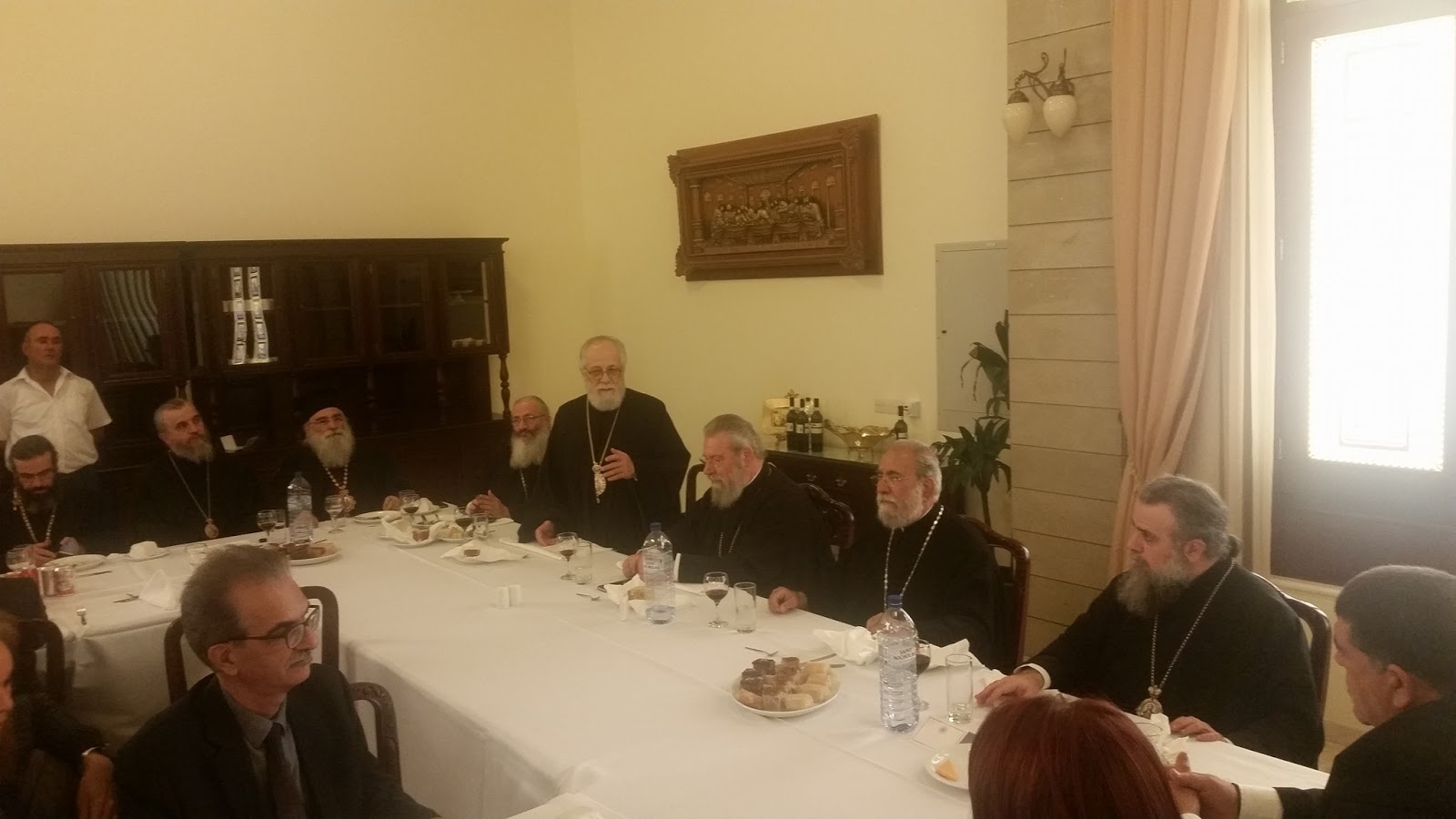 Το μεσημέρι παρετέθη υπό του Πανιερωτάτου επίσημο γεύμα στο οποίο παρακάθισαν ο Μακαριώτατος Αρχιεπίσκοπος Κύπρου κ. Χρυσόστομος, μέλη της Ιεράς Συνόδου, ο έξαρχος του Παναγίου Τάφου στην Κύπρου Σεβασμιώτατος Μητροπολίτης Βόστρων κ. Τιμόθεος και άλλοι προσκεκλημένοι.