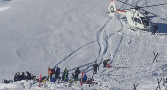 Μεταξύ αυτών όλοι οι γιατροί και φυσικά ο 14χρονος γιός του. Στο βάθος το ελικόπτερο έτοιμο να μεταφέρει τον Γερμανό στο νοσοκομείο της Γκρενόμπλ.
