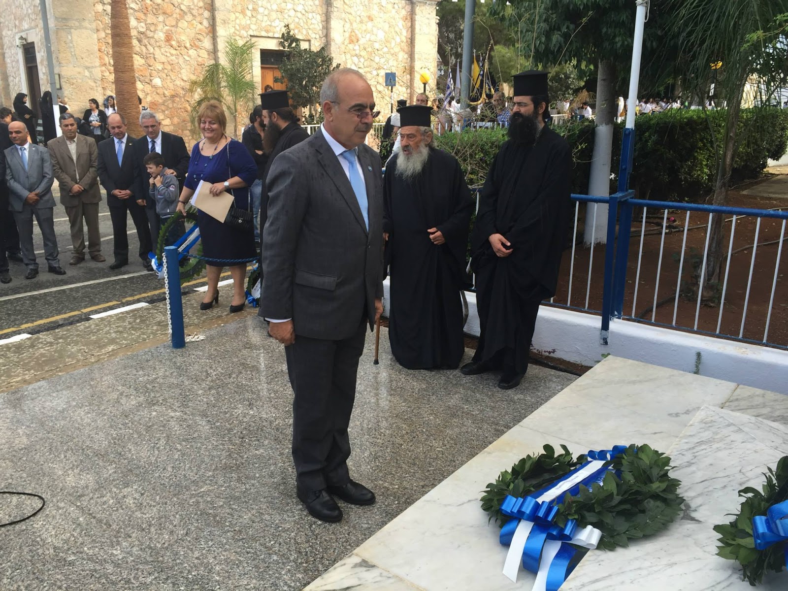 Στην ομιλία του ο κ. Σαμψών εξήρε τις θυσίες των ηρώων του πολέμου κατά των δυνάμεων του Άξονα και τόνισε ότι οι ίδιες αξίες και ιδανικά πρέπει να εμπνέουν και τη σημερινή γενιά για την υπεράσπιση των πατρογωνικών μας εστιών.