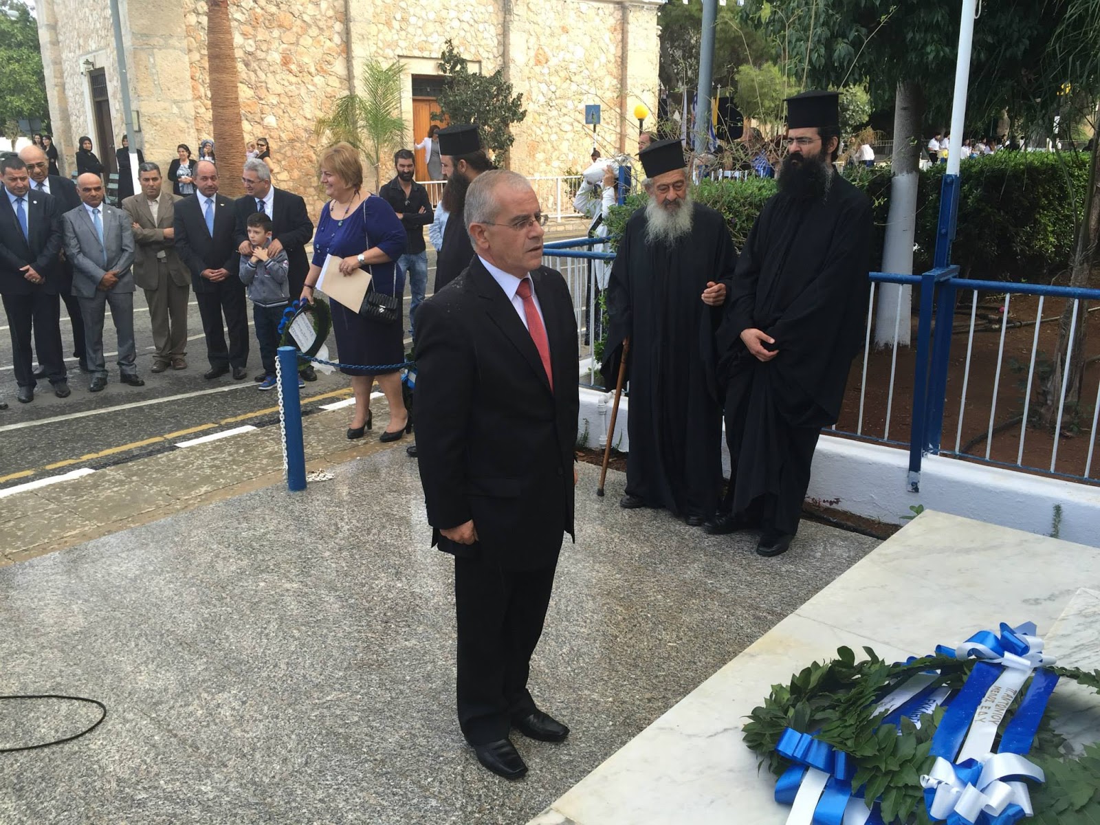 Ακολούθησε τρισάγιο και κατάθεση στεφάνων στο Μνημείο Πεσόντων και Αγνοουμένων Σωτήρας.