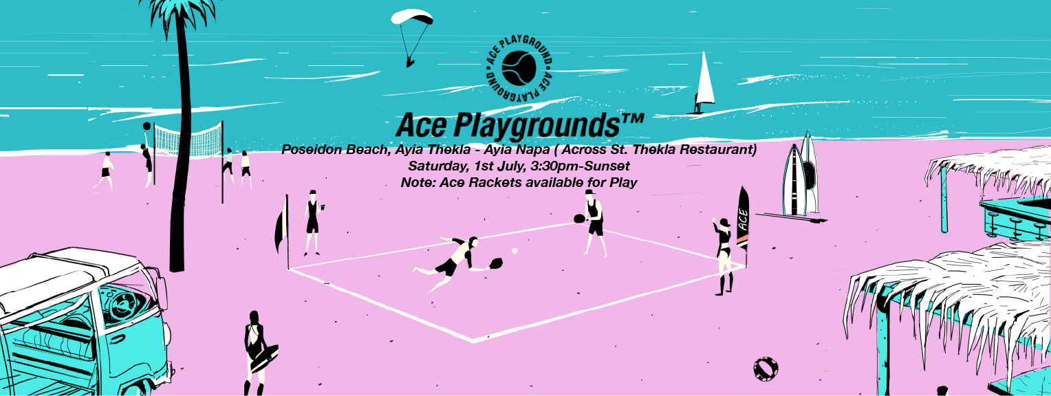 Αύριο Σάββατο 1η Ιουλίου, η Ace στήνει ακόμα ένα “Ace Playground™” στην παραλία Ποσειδώνας στην Αγία Θέκλα στη Σωτήρα από τις 3:30 το απόγευμα μέχρι το ηλιοβασίλεμα και μας καλεί να παίξουμε μαζί τους και να μάθουμε τα νέα κόλπα της… ρακέτας.