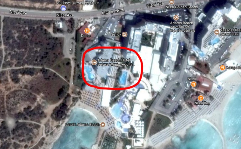 Στην Αγία Νάπα, το μικρό καζίνο θα λειτουργήσει στο ξενοδοχείο Adams στην περιοχή του Nissi Beach όπως φαίνεται στην εικόνα.