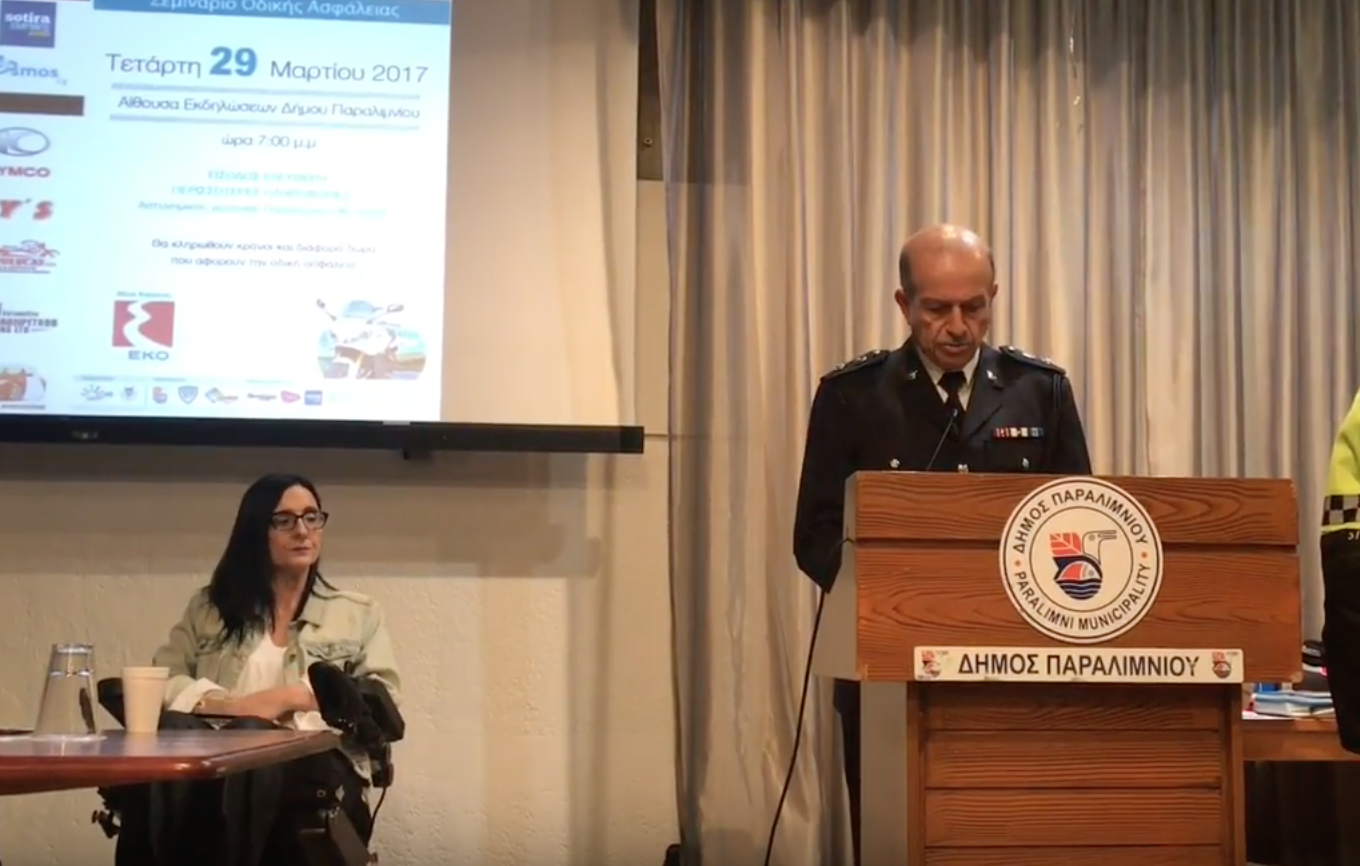 Χαιρετισμό απηύθυνε και ο Διευθυντής της Αστυνομικής Διεύθυνσης Αμμοχώστου, Αντώνης Παπακωνσταντίνου, ενώ εισηγήσεις για το θέμα έκαναν ο Υπεύθυνος του Τμήματος Οδικής Ασφάλειας Αμμοχώστου, Λοχίας Γιώργος Δημητρίου και ο Πρόεδρος της Λέσχης Φίλων Μοτοσυκλέτας Αμμοχώστου, Ζανέττος Κουμάσης.