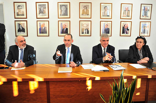 Υπογράφηκε σήμερα η συμφωνία πλαίσιο για την ανανέωση των συλλογικών συμβάσεων στα ΝΠΔΔ για τα έτη 2015-2018, μεταξύ του Χάρη Γεωργιάδη, Υπουργού Οικονομικών, εκ μέρους της Κυβέρνησης, και Γενικών Γραμματέων της ΣΕΚ και ΠΕΟ, Α. Μάτσα και Π. Κυρίτση, αντίστοιχα.