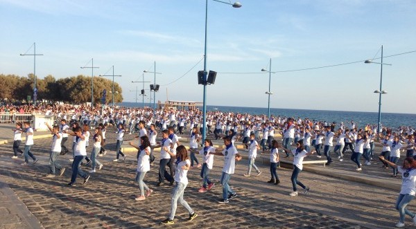 Χθες το απόγευμα, κατά μήκος του παραλιακού πεζόδρομου στην Αγία Νάπα, 754 άτομα, ντυμένα ομοιόμορφα με τζιν παντελόνι, άσπρη φανέλα και μπλε φουλάρι στο λαιμό με το σήμα του Δήμου Αγίας Νάπας και του Ρεκόρ Γκίνες, χόρεψαν συγχρονισμένα τα βήματα του ζεϊμπέκικου, για πέντε συνεχόμενα λεπτά.