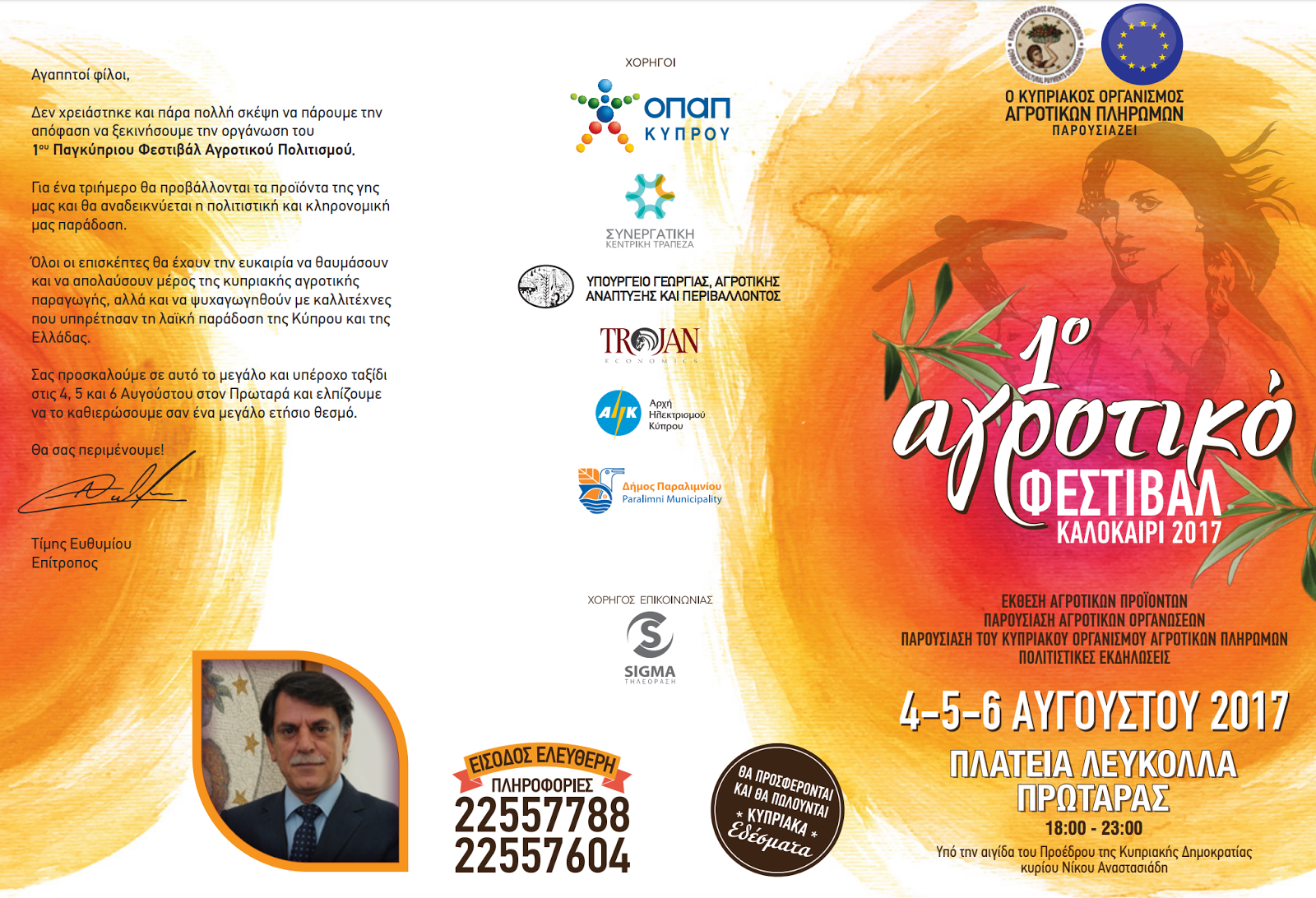 Ο Κυπριακός Οργανισμός Αγροτικών Πληρωμών διοργανώνει το 1ο Φεστιβάλ Αγροτικού Πολιτισμού.