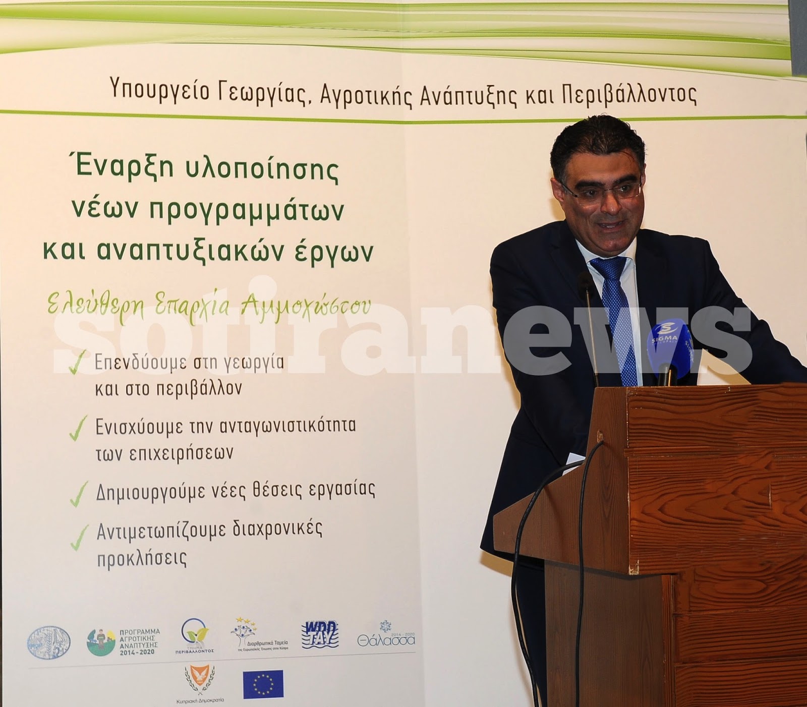 Παρουσιάζοντας τα υπό υλοποίηση έργα έκανε αναφορά στις εξαγγελίες του Προέδρου της Δημοκρατίας το Καλοκαίρι του 2015 όπου και εξαγγέλθηκαν έργα συνολικού προϋπολογισμού €500εκ., εκ των οποίων €210 εκ., ποσοστό δηλαδή 42%, ανάλαβε να τα υλοποιήσει το Υπουργείο Γεωργίας, Αγροτικής Ανάπτυξης και Περιβάλλοντος. Από αυτά, ποσό €58εκ., περίπου το ένα τρίτο, αφορά έργα που το Υπουργείο Γεωργίας θα υλοποιήσει στην Ελεύθερη Επαρχία Αμμοχώστου.